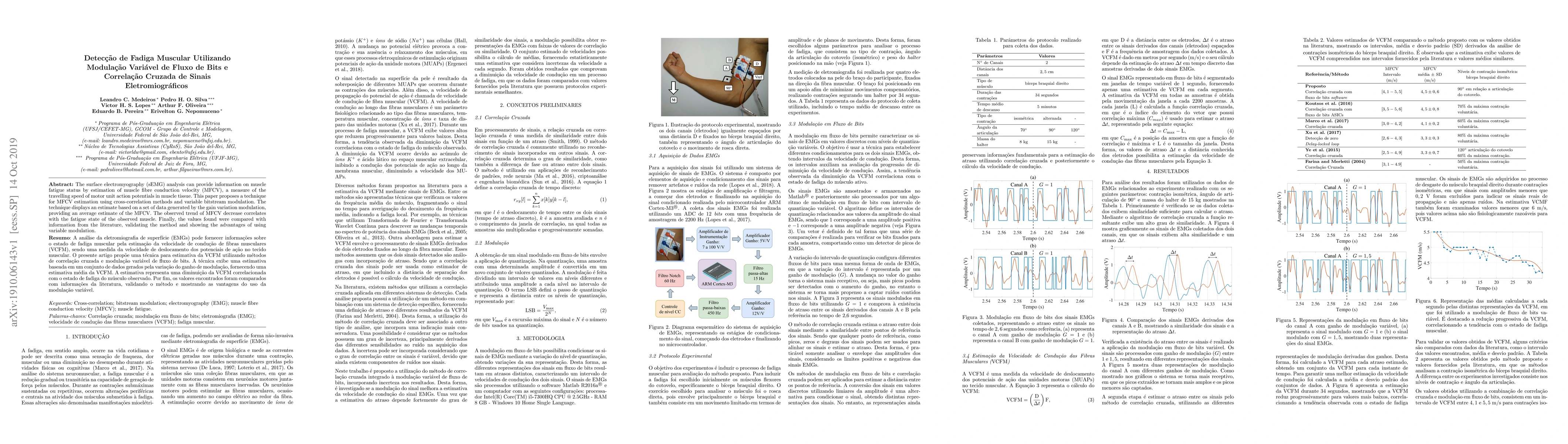The surface electromyography (sEMG) analysis can provide information on muscle fatigue status by estimation of muscle fibre conduction velocity (MFCV), a measure of the travelling speed of motor unit action potentials in muscle tissue. This paper proposes a technique for MFCV estimation using cross-correlation methods and variable bitstream modulation. The technique displays an estimate based on a set of data generated by the gain variation modulation, providing an average estimate of the MFCV. The observed trend of MFCV decrease correlates with the fatigue state of the observed muscle. Finally, the values found were compared with information from the literature, validating the method and showing the advantages of using variable modulation.