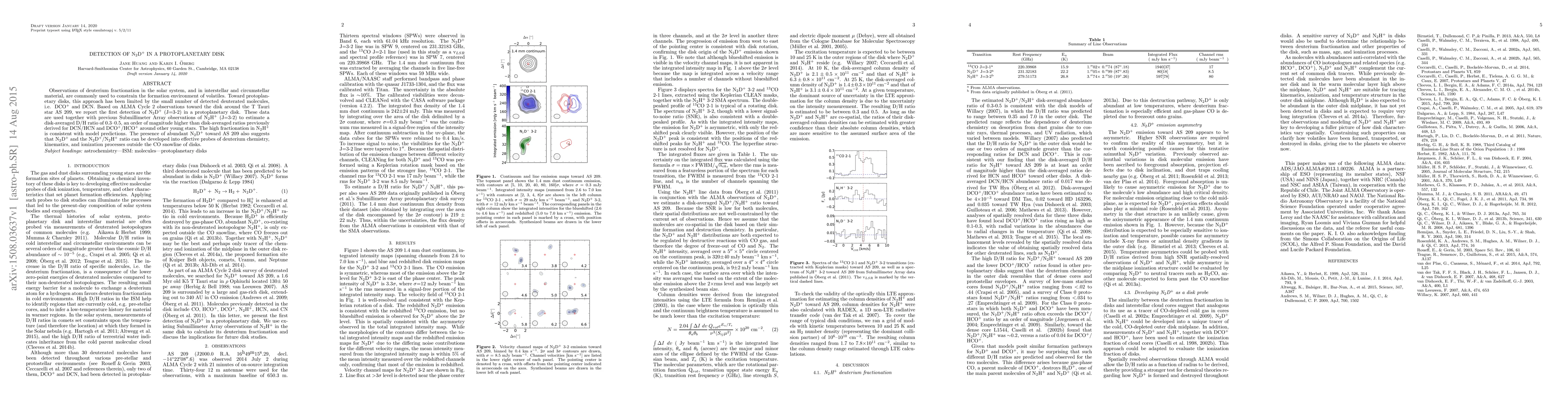 This paper reports the first detection of N$_2$D$^+$ in a protoplanetary disk around the T Tauri star AS 209 using ALMA observations. The findings suggest a disk-averaged D/H ratio of 0.3-0.5, significantly higher than previously derived ratios, indicating enhanced deuterium fractionation and potential new insights into deuterium chemistry and processes in the disk.