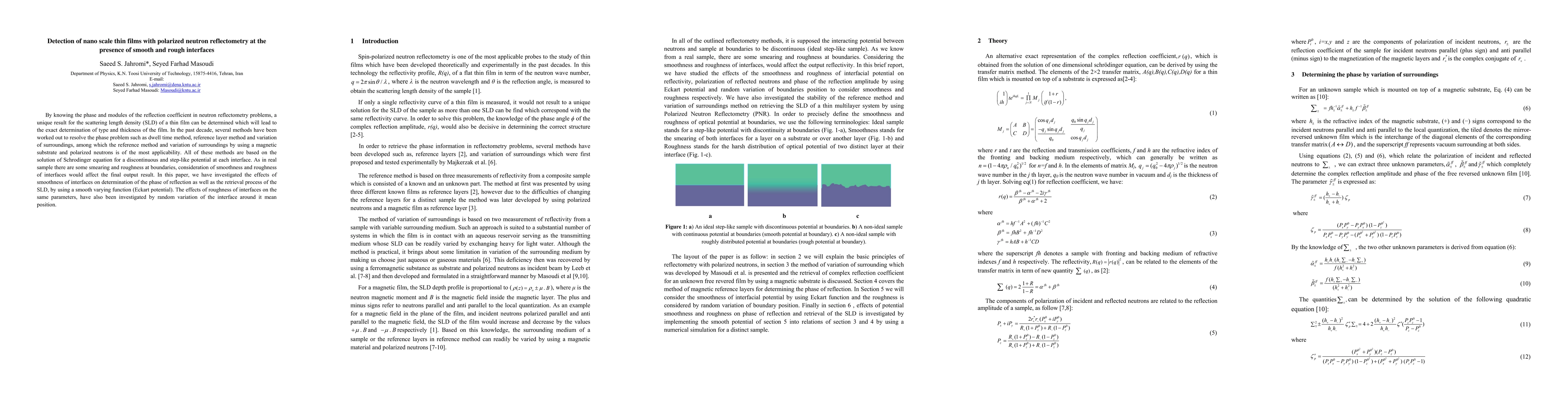 This paper investigates the impact of interface smoothness and roughness on the detection of nanoscale thin films using polarized neutron reflectometry, focusing on the determination of scattering length density and film thickness. It employs both smooth varying functions and random interface variations to analyze these effects.