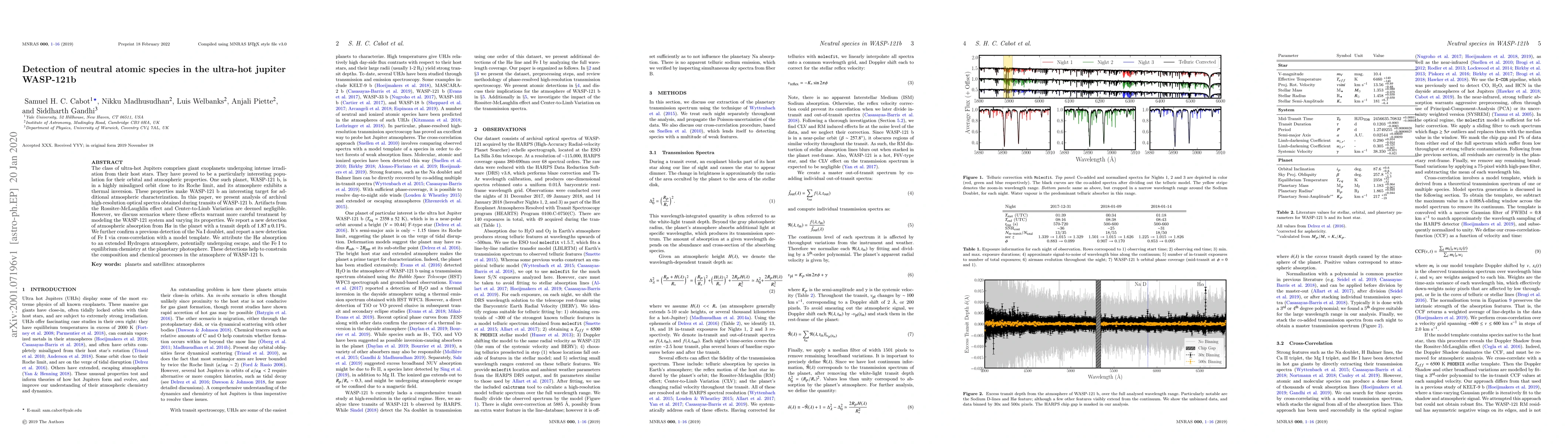Researchers detected neutral atomic species in the atmosphere of WASP-121b, a hot Jupiter with an extended hydrogen layer, using high-resolution optical spectra.