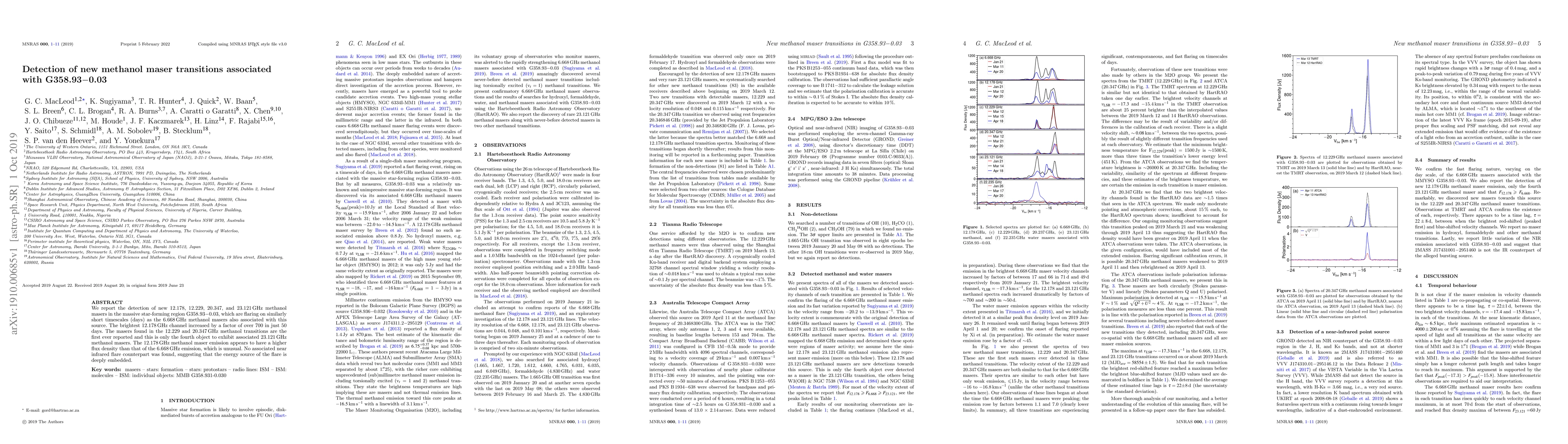 This paper reports the discovery of new methanol maser transitions at 12.178, 12.229, 20.347, and 23.121 GHz in the massive star-forming region G358.93-0.03, with the 12.178 GHz maser showing an unprecedented increase in flux density. The masers exhibit short-term flaring behavior, and no near-infrared counterpart was detected, indicating a deeply embedded energy source.
