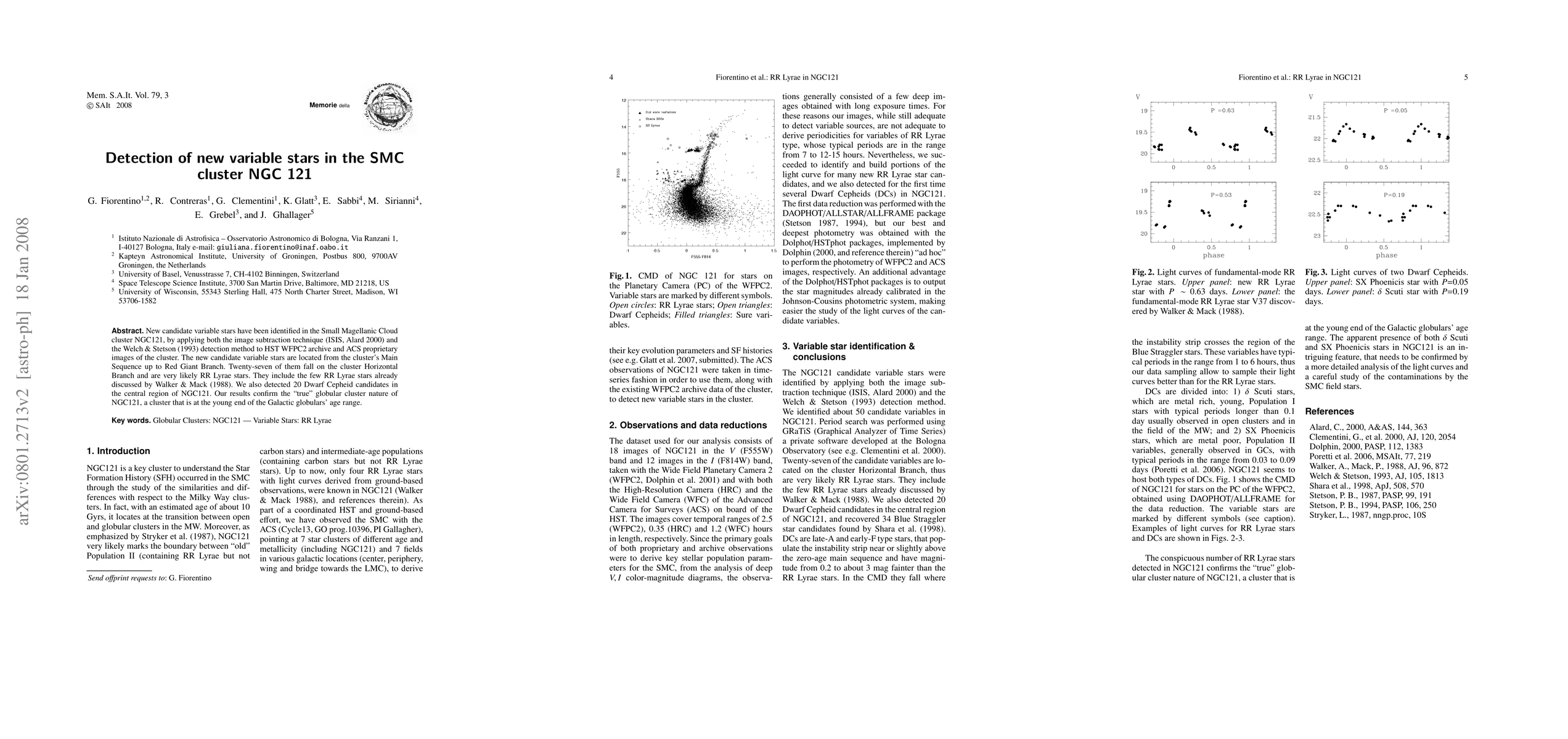 This paper identifies new candidate variable stars in the SMC cluster NGC 121 using image subtraction and detection methods on HST images. It finds 27 likely RR Lyrae stars and 20 Dwarf Cepheid candidates, confirming NGC 121's status as a young globular cluster.