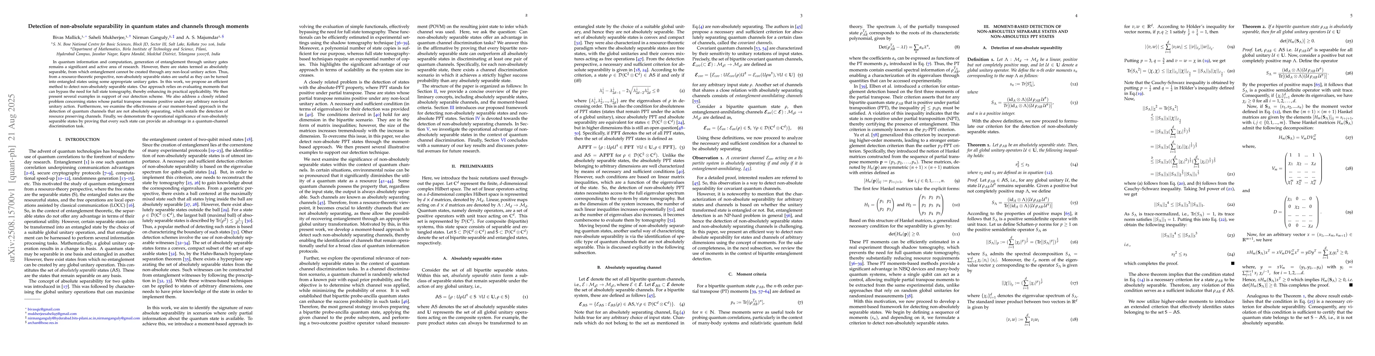 In quantum information and computation, generation of entanglement through unitary gates remains a significant and active area of research. However, there are states termed as absolutely separable, from which entanglement cannot be created through any non-local unitary action. Thus, from a resource-theoretic perspective, non-absolutely separable states are useful as they can be turned into entangled states using some appropriate unitary gates. In this work, we propose an efficient method to detect non-absolutely separable states. Our approach relies on evaluating moments that can bypass the need for full state tomography, thereby enhancing its practical applicability. We then present several examples in support of our detection scheme. We also address a closely related problem concerning states whose partial transpose remains positive under any arbitrary non-local unitary action. Furthermore, we examine the effectiveness of our moment-based approach in the detection of quantum channels that are not absolutely separating, which entails the detection of resource preserving channels. Finally, we demonstrate the operational significance of non-absolutely separable states by proving that every such state can provide an advantage in a quantum-channel discrimination task.