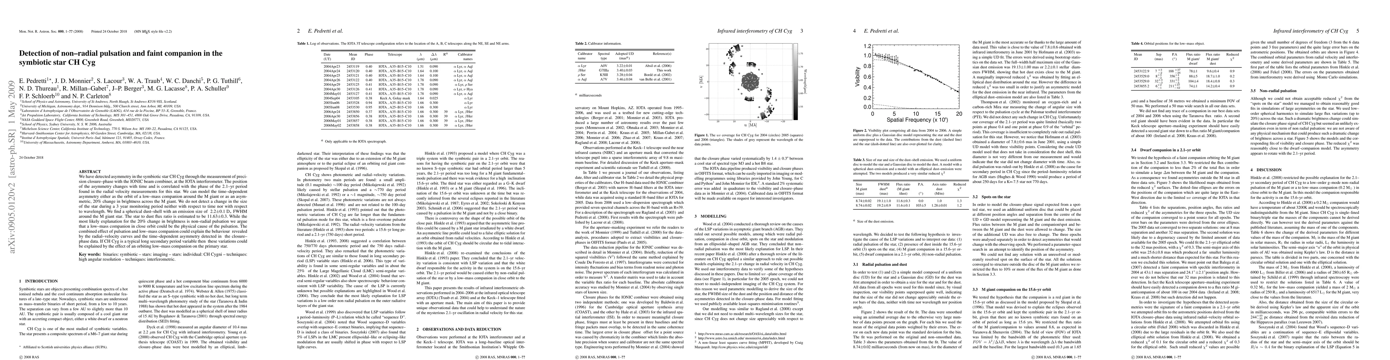 This study detected time-varying asymmetry in the symbiotic star CH Cyg, likely due to either non-radial pulsation or a low-mass companion orbiting the M giant, using precision closure-phase measurements. The findings suggest that the combined effects of these phenomena could explain the observed radial-velocity variations and asymmetry.