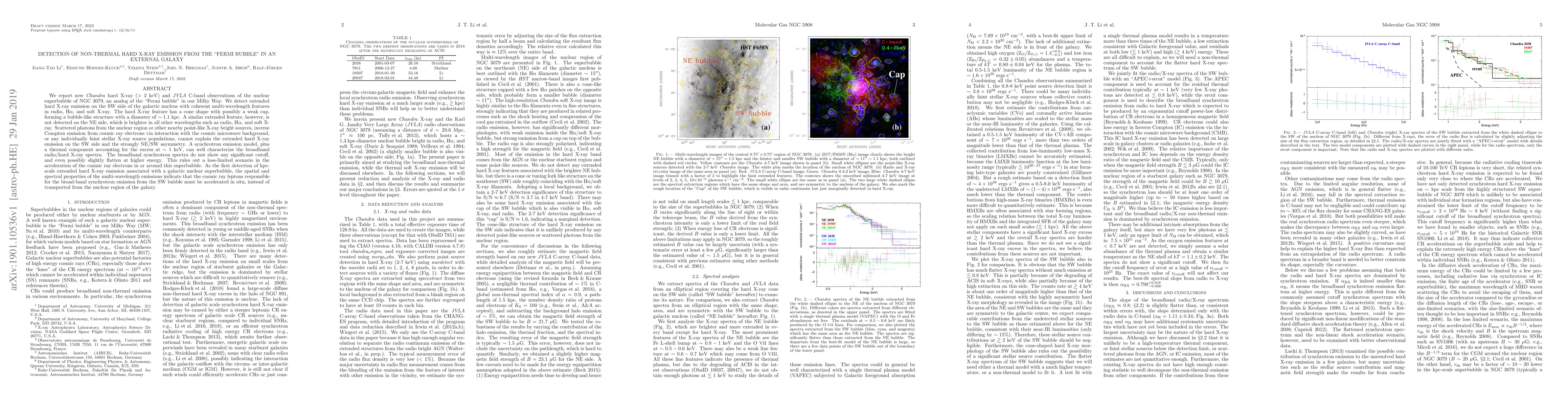 This paper reports the detection of extended hard X-ray emission from the nuclear superbubble of NGC 3079, revealing a cone-shaped bubble-like structure. The findings suggest that cosmic ray electrons responsible for the synchrotron emission are locally accelerated within the superbubble, rather than transported from the galactic nucleus.