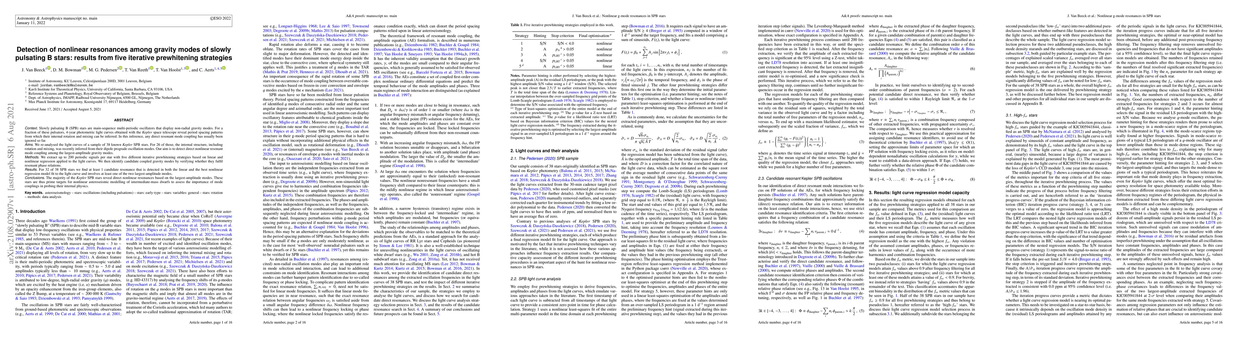New study detects nonlinear resonances in gravity modes of slowly pulsating B stars using five prewhitening strategies, revealing a majority of stars with direct mode coupling.
