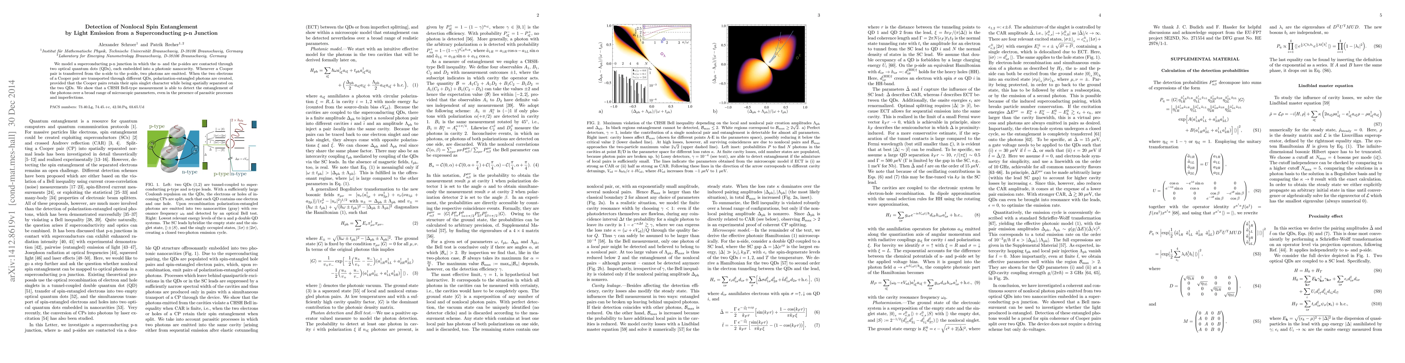 We model a superconducting p-n junction in which the n- and the p-sides are contacted through two optical quantum dots (QDs), each embedded into a photonic nanocavity. Whenever a Cooper pair is transferred from the n-side to the p-side, two photons are emitted. When the two electrons of a Cooper pair are transported through different QDs, polarization-entangled photons are created, provided that the Cooper pairs retain their spin singlet character while being spatially separated on the two QDs. We show that a CHSH Bell-type measurement is able to detect the entanglement of the photons over a broad range of microscopic parameters, even in the presence of parasitic processes and imperfections.