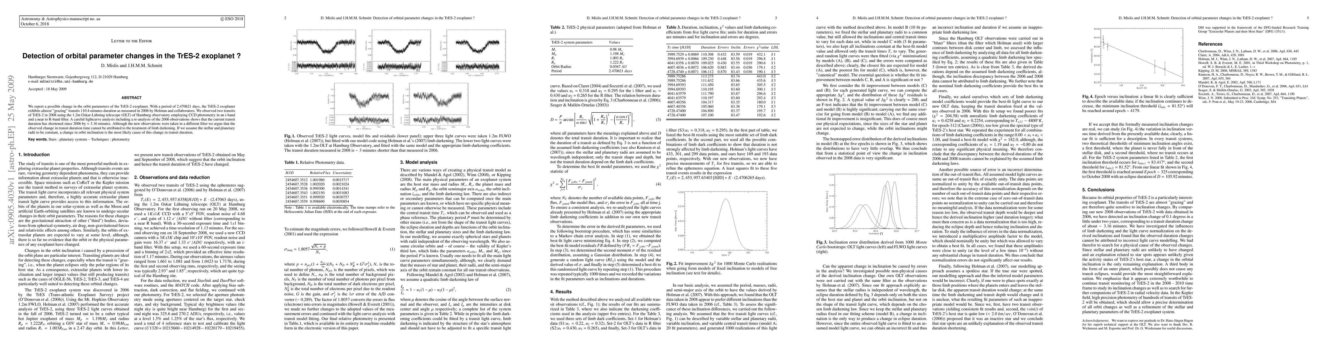 This study reports a possible change in the orbital parameters of the TrES-2 exoplanet, noting a reduction in transit duration by ~3.16 minutes since 2006 observations. The observed change in transit duration suggests a likely alteration in the orbit inclination, assuming constant stellar and planetary radii.