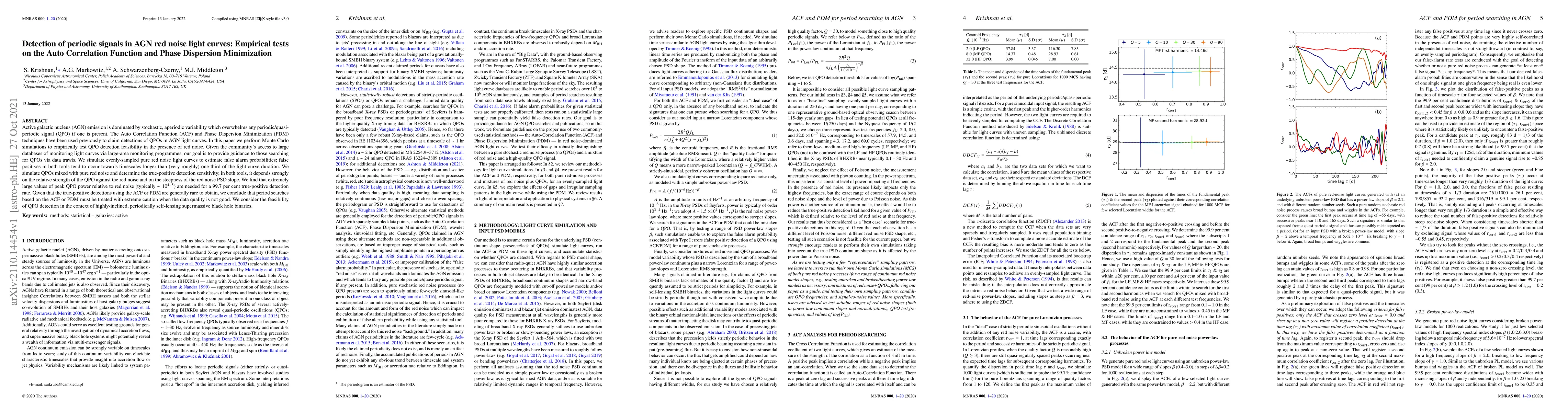 This paper investigates the detection of quasi-periodic oscillations (QPOs) in active galactic nucleus (AGN) light curves using Auto Correlation Function (ACF) and Phase Dispersion Minimization (PDM) techniques, finding that extremely large QPO power relative to red noise is required for reliable detection. It concludes that caution is needed in interpreting QPO detections due to high false positive rates.
