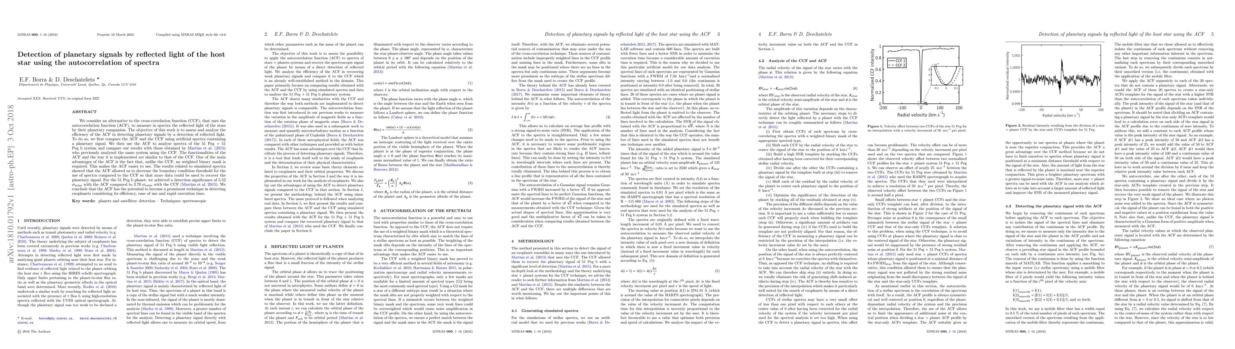 This paper proposes using the autocorrelation function (ACF) instead of the cross-correlation function (CCF) to detect planetary signals by analyzing reflected starlight. The ACF showed higher detection efficiency and ease of use compared to the CCF, achieving a higher detection significance for the 51 Peg b planet.