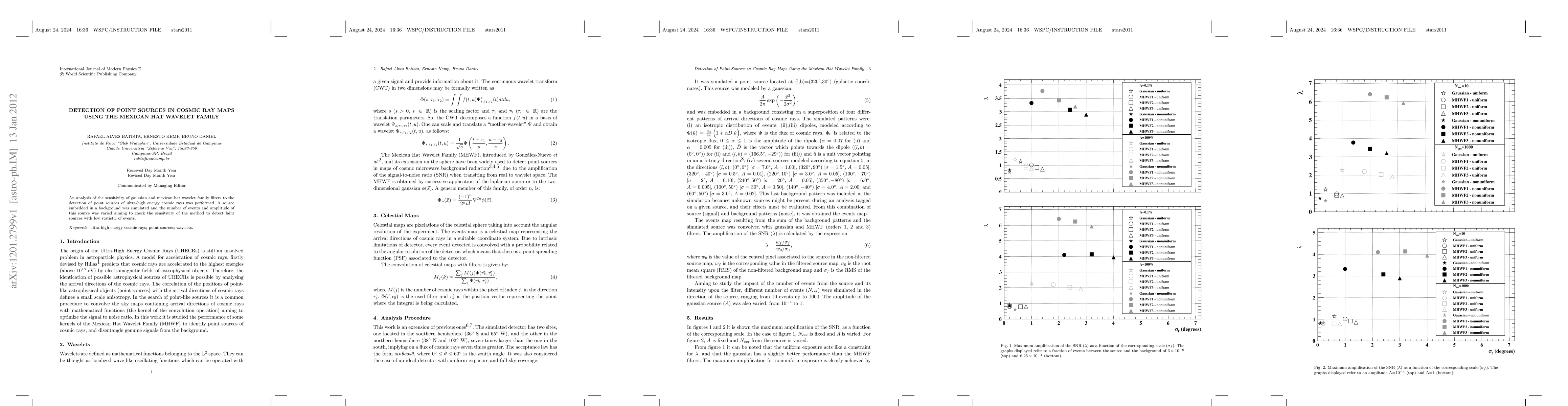 This paper investigates the effectiveness of Gaussian and Mexican Hat wavelet filters in detecting point sources of ultra-high energy cosmic rays, using simulations of sources embedded in background noise to assess the method's sensitivity to faint sources with low event statistics.