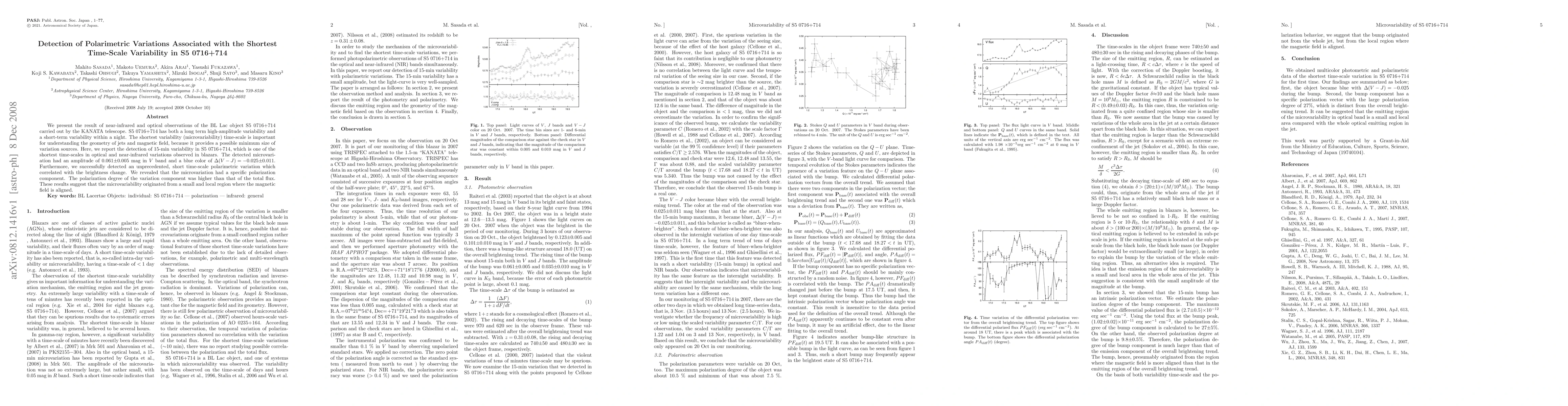 Researchers detected 15-minute variability in BL Lac object S5 0716+714, revealing a polarimetric variation that correlated with brightness changes, suggesting a small, local region with aligned magnetic fields.