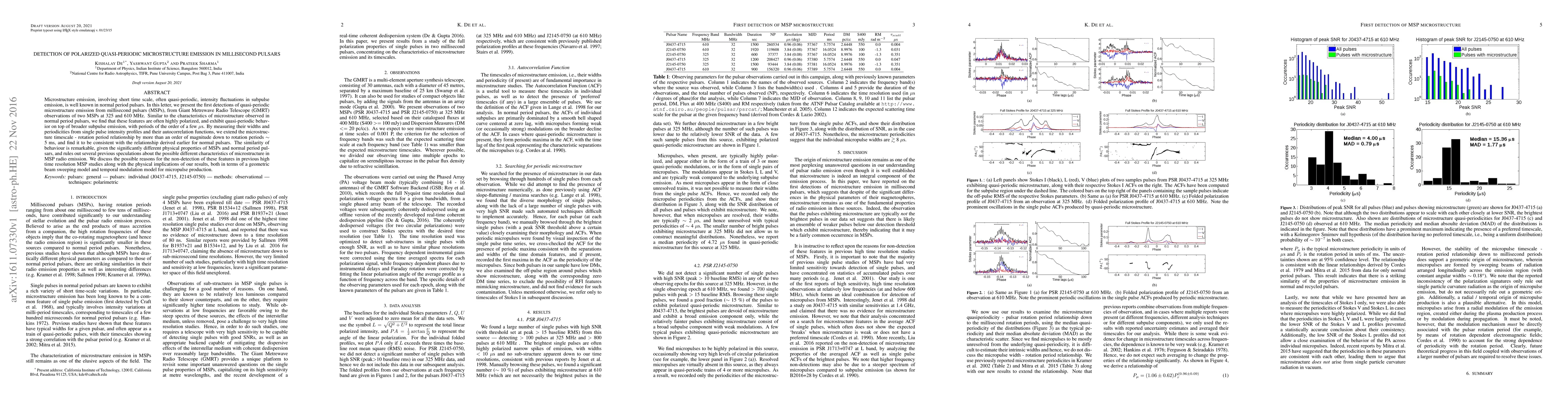 This paper reports the first detection of quasi-periodic microstructure emission in millisecond pulsars (MSPs), observed via GMRT at 325 and 610 MHz. These microstructures, similar to those in normal pulsars, are highly polarized and exhibit quasi-periodic behavior, extending the microstructure timescale relationship to MSPs.