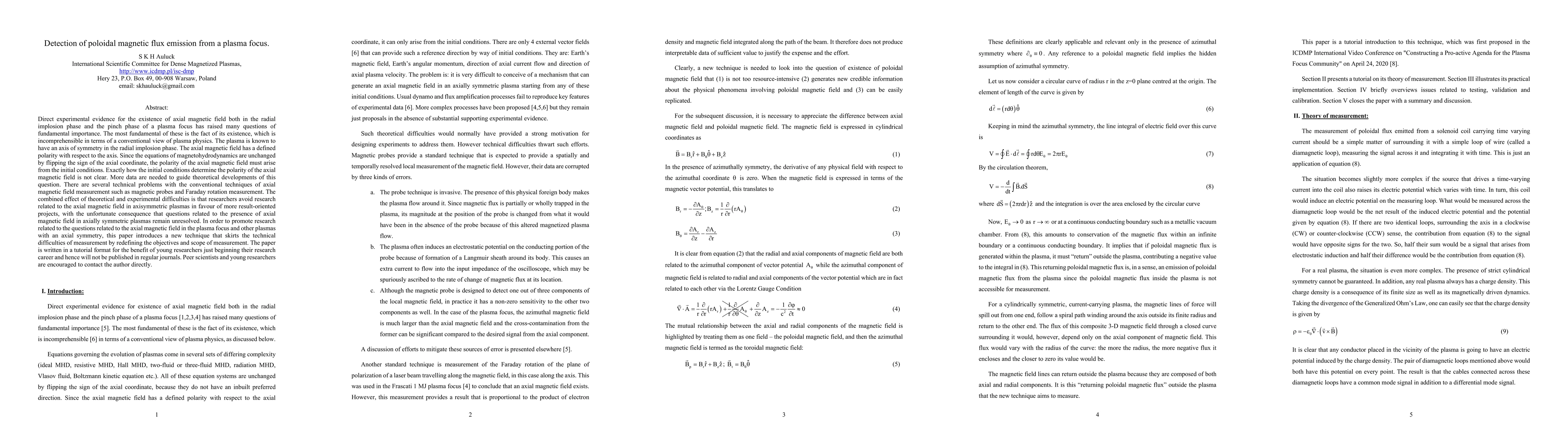This paper presents a novel technique for detecting axial magnetic fields in plasma focus devices, addressing the unresolved questions about their existence and polarity during the radial implosion and pinch phases. It aims to encourage further research by overcoming measurement challenges and is intended for young researchers.