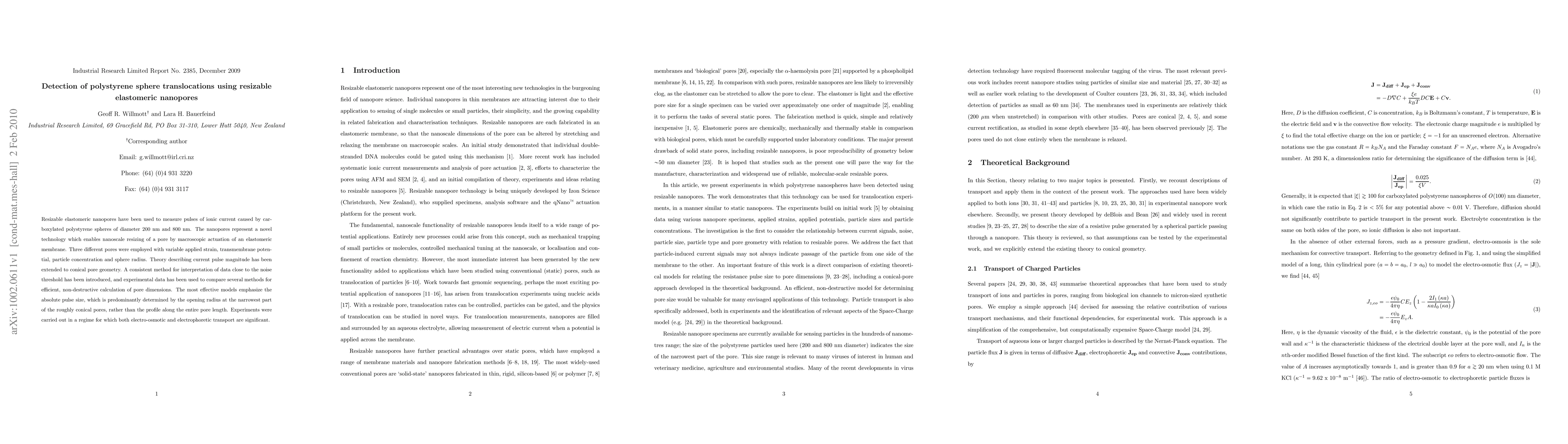 Resizable elastomeric nanopores have been used to measure pulses of ionic current caused by carboxylated polystyrene spheres of diameter 200 nm and 800 nm. The nanopores represent a novel technology which enables nanoscale resizing of a pore by macroscopic actuation of an elastomeric membrane. Three different pores were employed with variable applied strain, transmembrane potential, particle concentration and sphere radius. Theory describing current pulse magnitude has been extended to conical pore geometry. A consistent method for interpretation of data close to the noise threshold has been introduced, and experimental data has been used to compare several methods for efficient, non-destructive calculation of pore dimensions. The most effective models emphasize the absolute pulse size, which is predominantly determined by the opening radius at the narrowest part of the roughly conical pores, rather than the profile along the entire pore length. Experiments were carried out in a regime for which both electro-osmotic and electrophoretic transport are significant.