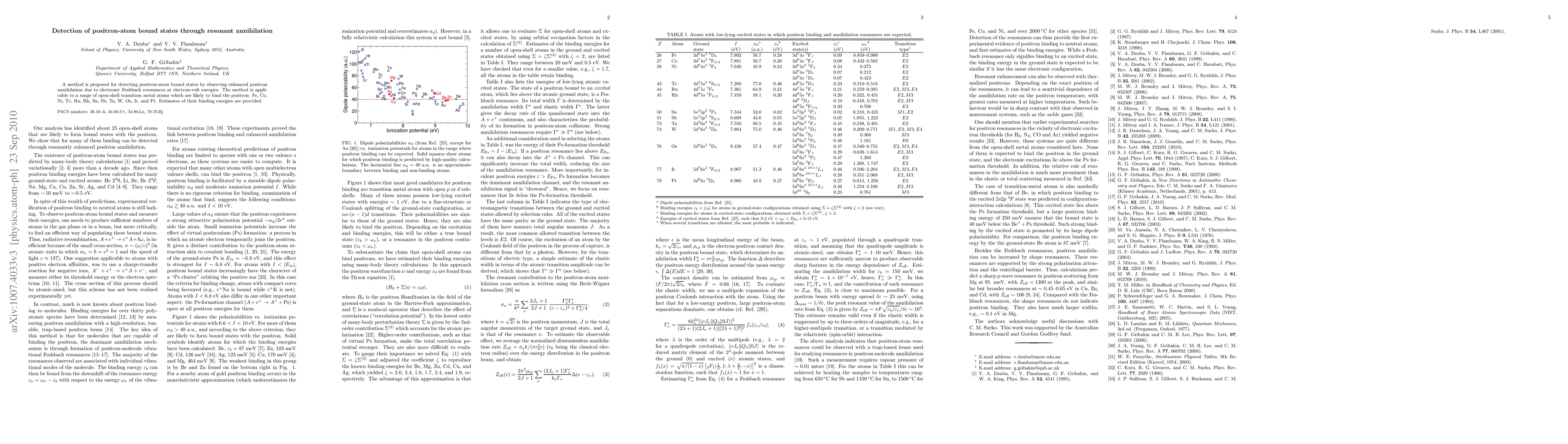 This paper proposes a method to detect positron-atom bound states by observing enhanced positron annihilation via electronic Feshbach resonances, applicable to open-shell transition metals like Fe, Co, Ni, and others, with estimates of their binding energies provided.