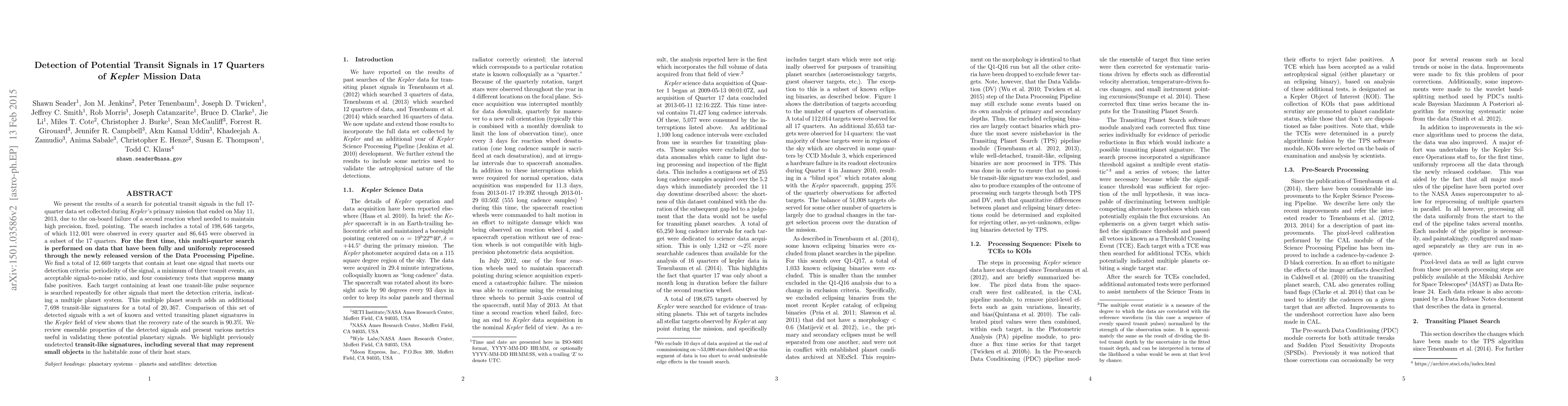 This study analyzes 17 quarters of Kepler mission data, identifying 20,367 potential transit signals from 12,669 targets, with a 90.3% recovery rate compared to known planets. The search emphasizes multiple planet systems and highlights new candidates, including small planets in the habitable zones.