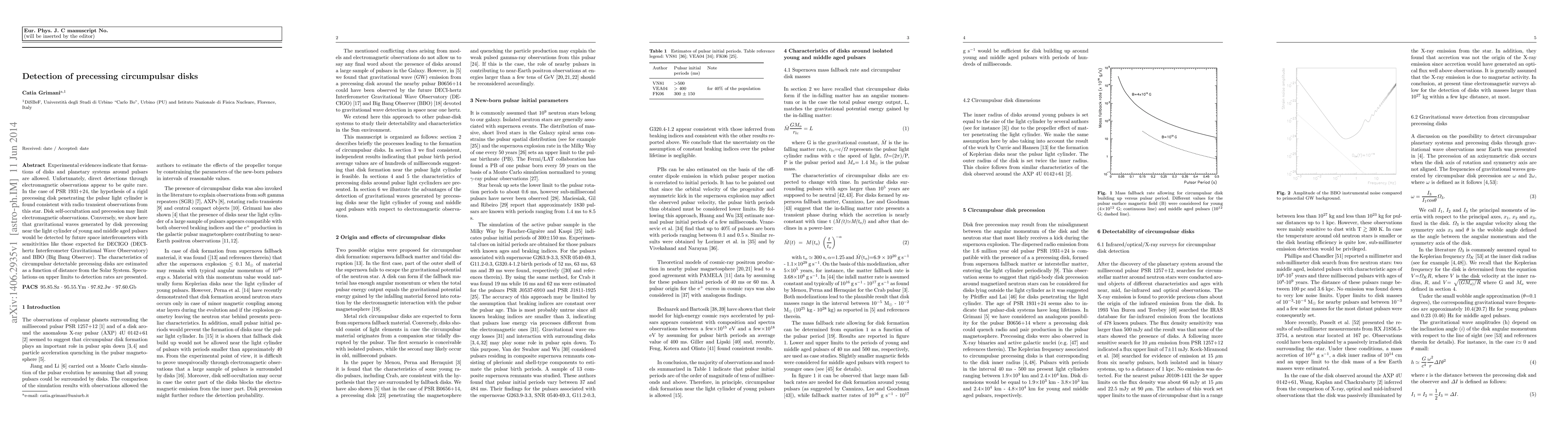 Experimental evidences indicate that formations of disks and planetary systems around pulsars are allowed. Unfortunately, direct detections through electromagnetic observations appear to be quite rare. In the case of PSR 1931+24, the hypothesis of a rigid precessing disk penetrating the pulsar light cylinder is found consistent with radio transient observations from this star. Disk self-occultation and precession may limit electromagnetic observations. Conversely, we show here that gravitational waves generated by disk precessing near the light cylinder of young and middle aged pulsars would be detected by future space interferometers with sensitivities like those expected for DECIGO (DECI-hertz Interferometer Gravitational Wave Observatory) and BBO (Big Bang Observer). The characteristics of circumpulsar detectable precessing disks are estimated as a function of distance from the Solar System. Speculations on upper limits to detection rates are presented.