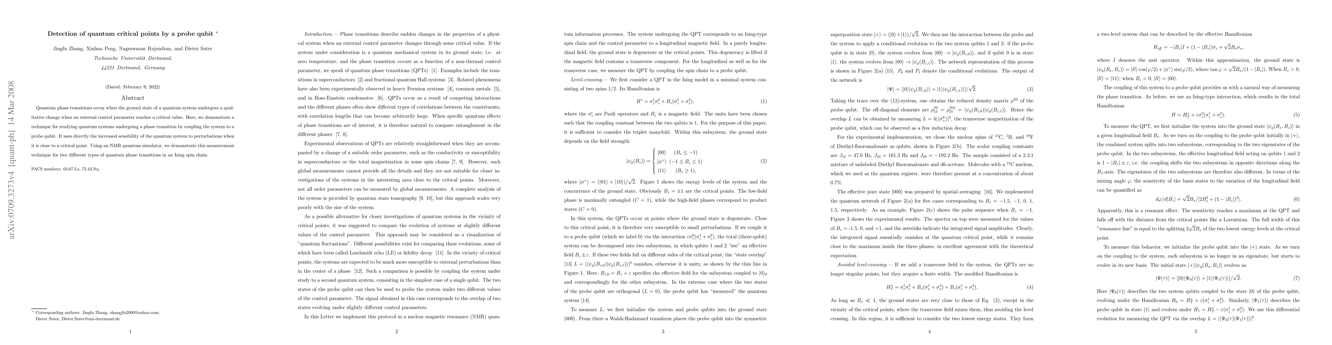 Quantum phase transitions occur when the ground state of a quantum system undergoes a qualitative change when an external control parameter reaches a critical value. Here, we demonstrate a technique for studying quantum systems undergoing a phase transition by coupling the system to a probe qubit. It uses directly the increased sensibility of the quantum system to perturbations when it is close to a critical point. Using an NMR quantum simulator, we demonstrate this measurement technique for two different types of quantum phase transitions in an Ising spin chain.