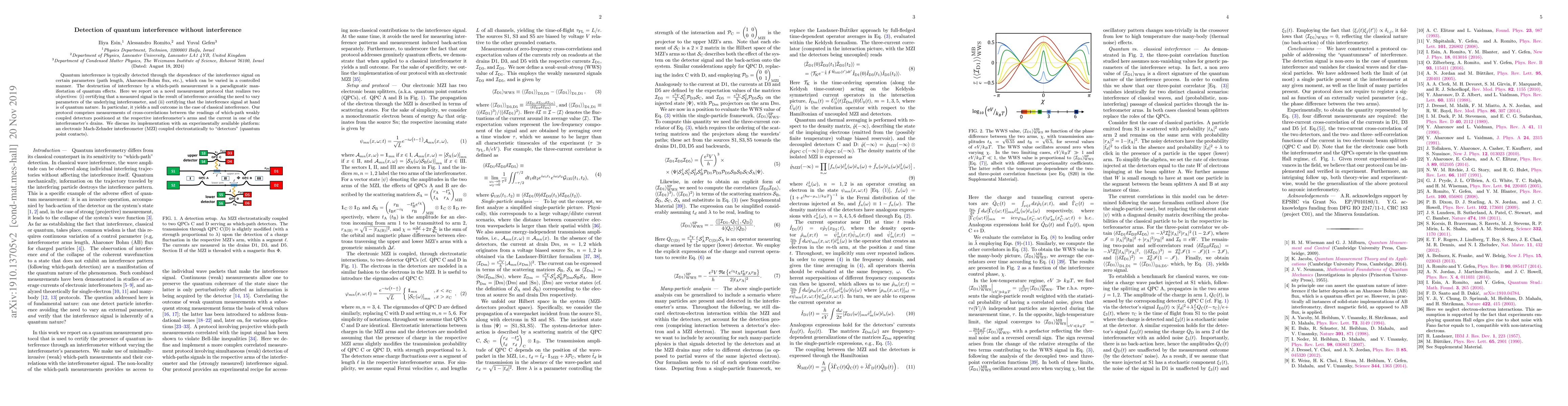 This paper introduces a novel measurement protocol to certify quantum interference without varying interferometer parameters, distinguishing it from classical interference by measuring cross-correlations between weakly coupled detectors and the current in an electronic Mach-Zehnder interferometer.
