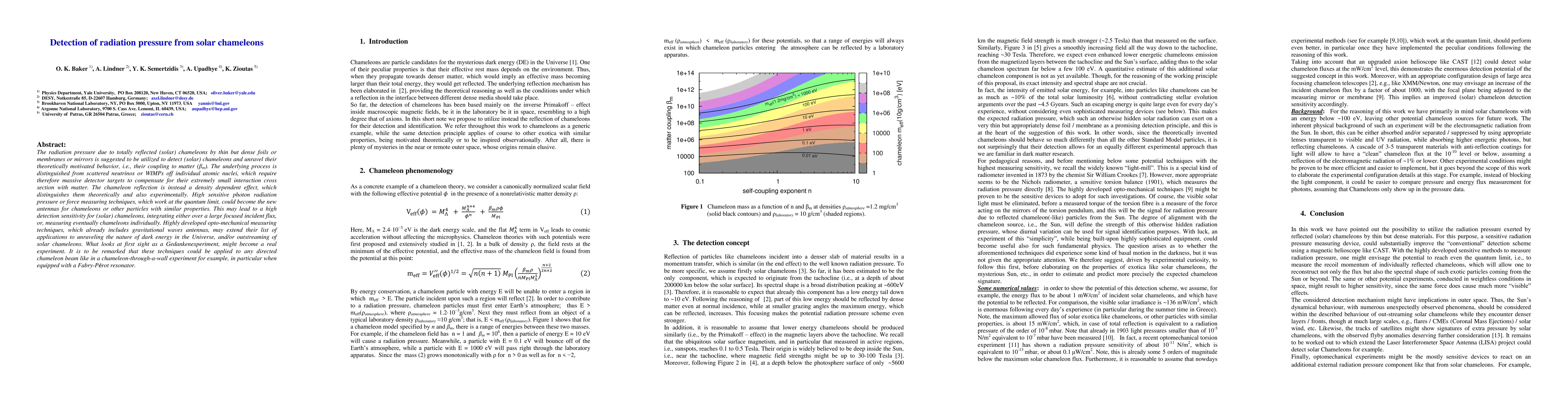 This paper proposes a method to detect solar chameleons through radiation pressure from reflected chameleons, suggesting that sensitive photon radiation pressure measurement techniques could serve as new detection tools. While primarily theoretical, the idea also extends to chameleon-through-a-wall experiments enhanced by Fabry-Perot resonators.