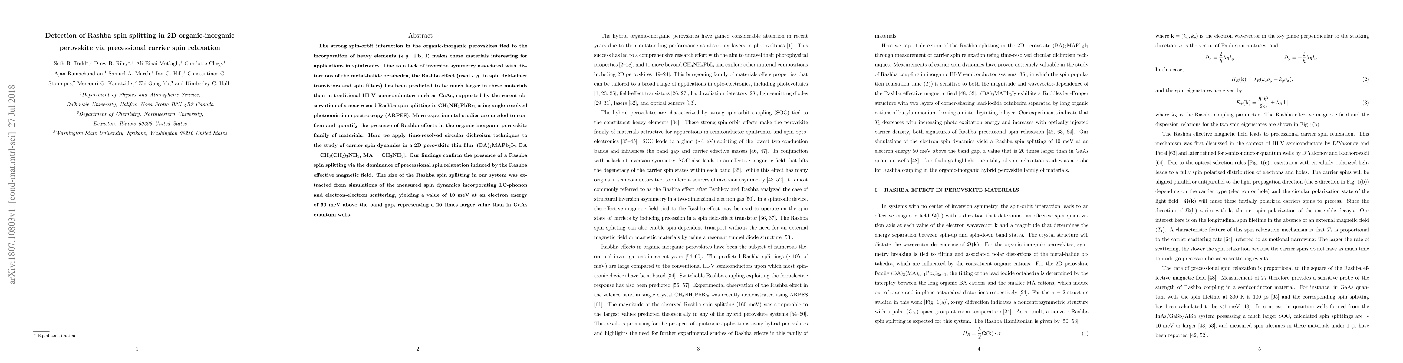 This study confirms the presence of significant Rashba spin splitting in a 2D organic-inorganic perovskite using time-resolved circular dichroism, revealing a 20 times larger value than in GaAs quantum wells, which suggests promising spintronic applications.