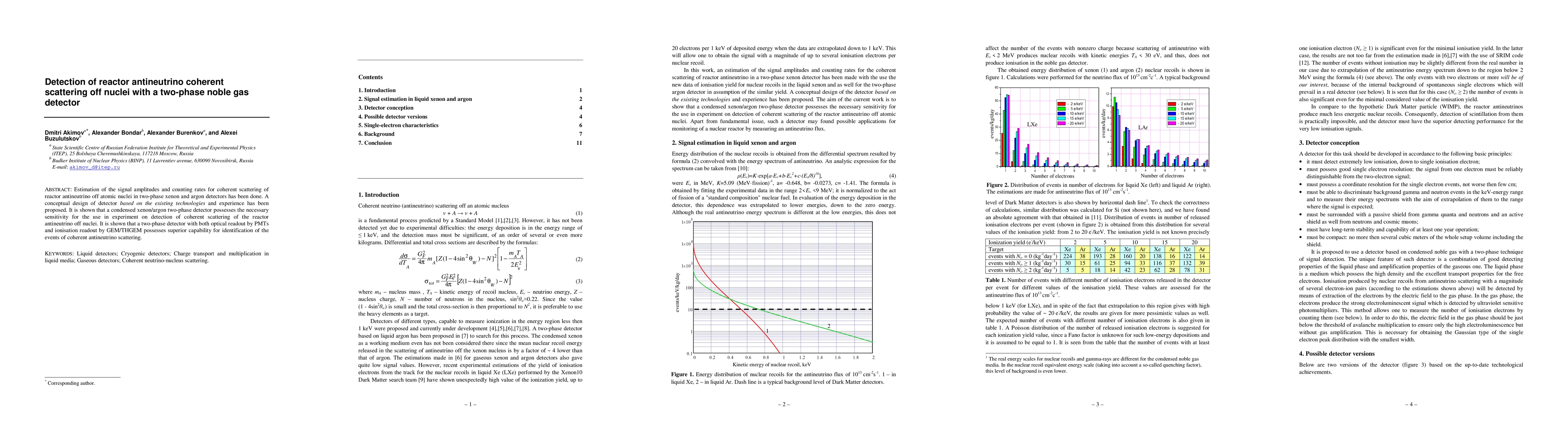 This paper proposes a conceptual design for a two-phase noble gas detector using xenon and argon to detect coherent scattering of reactor antineutrinos off nuclei. The study demonstrates that such a detector can achieve the necessary sensitivity and superior event identification capabilities through combined optical and ionization readouts.