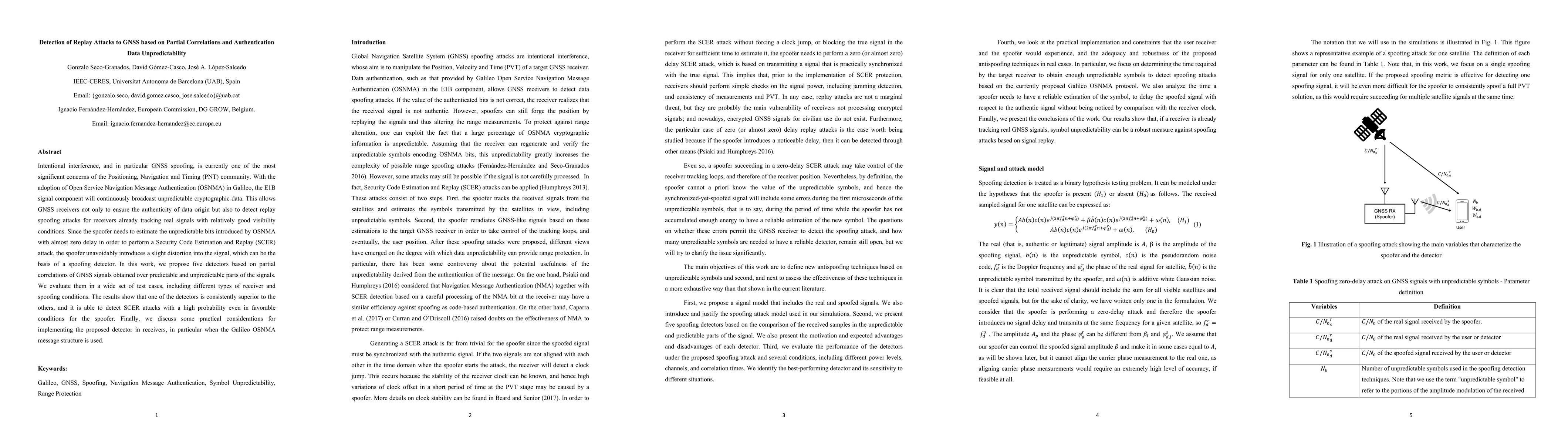 This paper proposes five detectors to identify replay spoofing attacks in GNSS systems, focusing on the use of partial correlations and the unpredictability of authentication data from OSNMA. The best detector consistently outperforms others, showing high detection probability even under favorable spoofer conditions, with practical implementation considerations discussed for Galileo receivers.