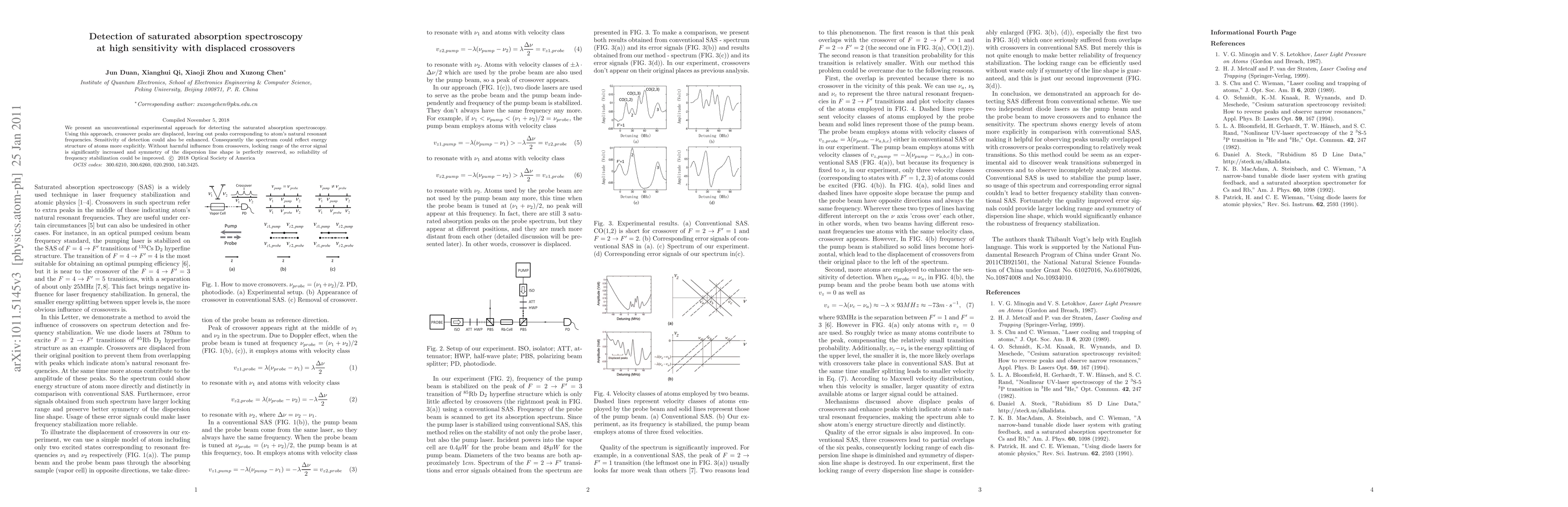 Researchers developed a new method for detecting saturated absorption spectroscopy with improved sensitivity and accuracy, removing the impact of crossovers on the spectrum.
