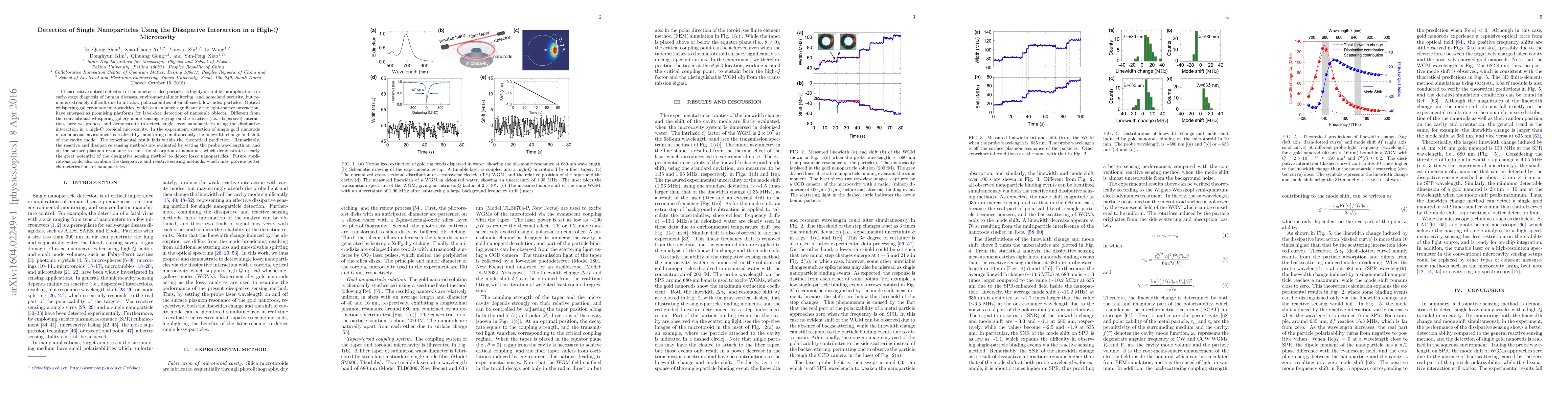 This paper proposes a novel method using dissipative interaction in a high-$Q$ toroidal microcavity for detecting single lossy nanoparticles, demonstrating the detection of gold nanorods through linewidth change and mode shift monitoring. The method shows great potential for label-free detection in applications like disease diagnosis and environmental monitoring.