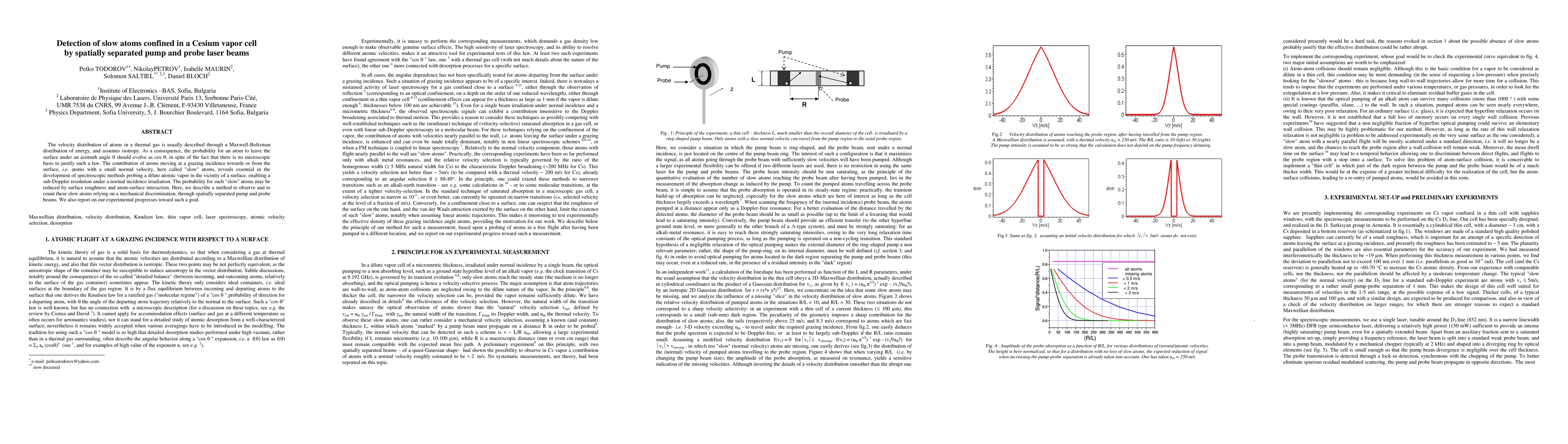 The velocity distribution of atoms in a thermal gas is usually described through a Maxwell-Boltzman distribution of energy, and assumes isotropy. As a consequence, the probability for an atom to leave the surface under an azimuth angle {\theta} should evolve as cos {\theta}, in spite of the fact that there is no microscopic basis to justify such a law. The contribution of atoms moving at a grazing incidence towards or from the surface, i.e. atoms with a small normal velocity, here called "slow" atoms, reveals essential in the development of spectroscopic methods probing a dilute atomic vapor in the vicinity of a surface, enabling a sub-Doppler resolution under a normal incidence irradiation. The probability for such "slow" atoms may be reduced by surface roughness and atom-surface interaction. Here, we describe a method to observe and to count these slow atoms relying on a mechanical discrimination, through spatially separated pump and probe beams. We also report on our experimental progresses toward such a goal.