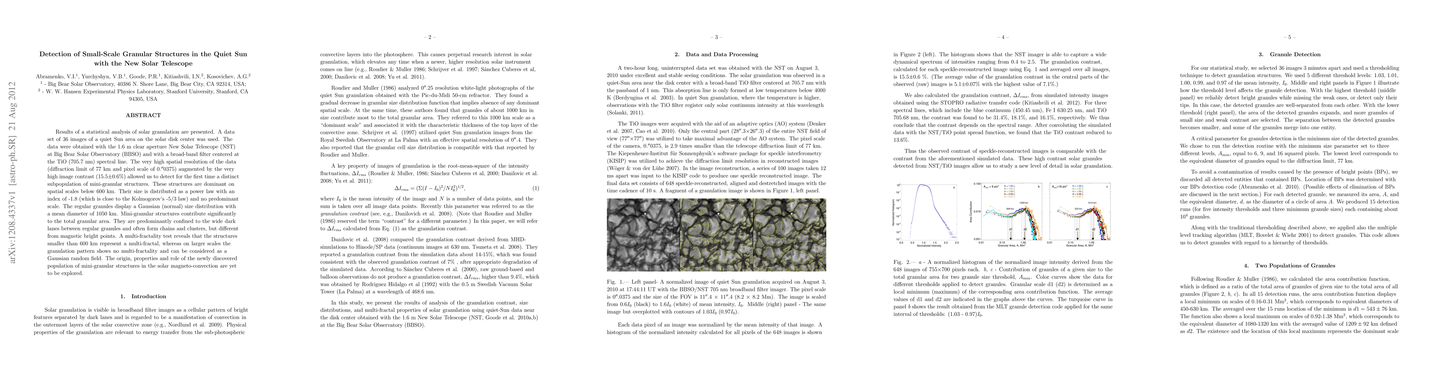 This paper reports the detection of small-scale mini-granular structures in the quiet Sun using the New Solar Telescope, revealing a distinct subpopulation of structures below 600 km in size. These structures follow a power law distribution and exhibit multi-fractality, contrasting with the Gaussian random field nature of larger granules.