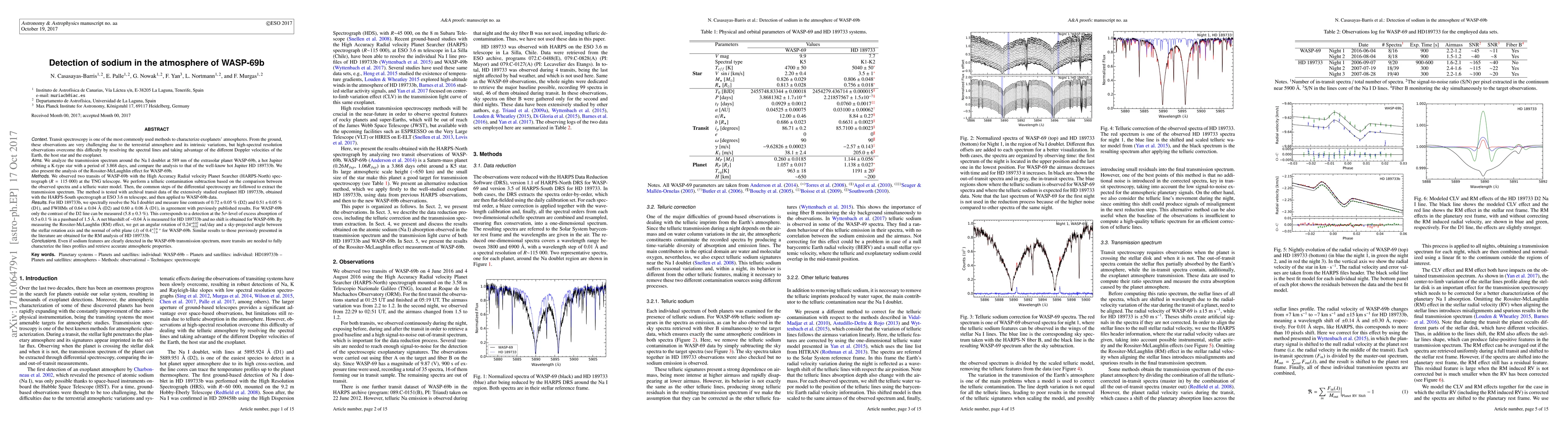 This study uses transit spectroscopy to detect sodium in the atmosphere of the hot Jupiter WASP-69b, observing two transits with the HARPS-North spectrograph. The method successfully detects sodium in WASP-69b at a 5σ level, but more transits are required for detailed atmospheric characterization.