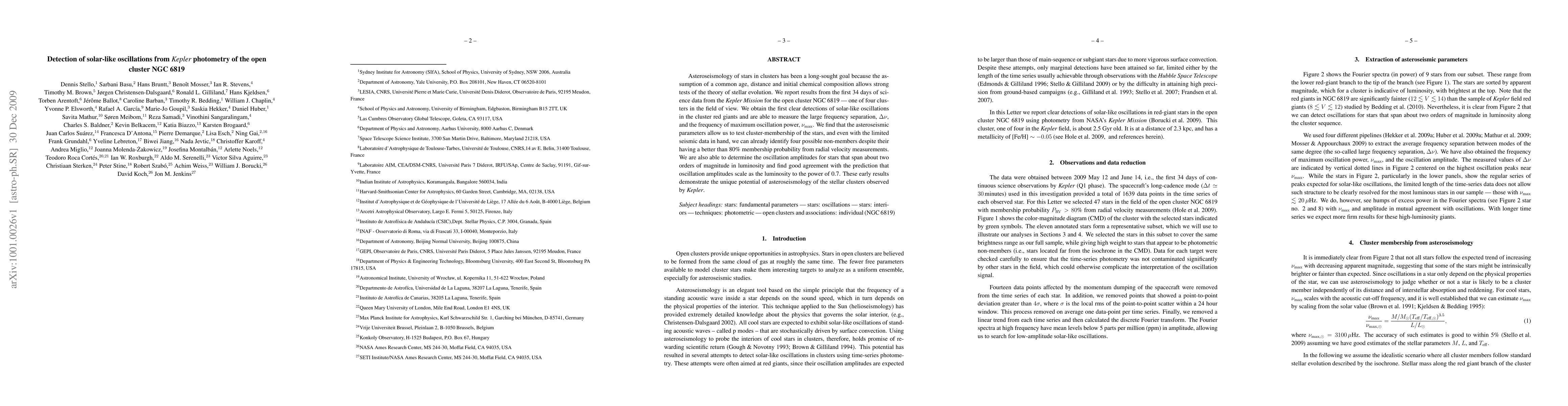 This study, using Kepler mission data, detects solar-like oscillations in red giants of open cluster NGC 6819. It successfully measures large frequency separation and frequency of maximum oscillation power, demonstrating asteroseismology's potential in verifying cluster membership and scaling oscillation amplitudes with luminosity.