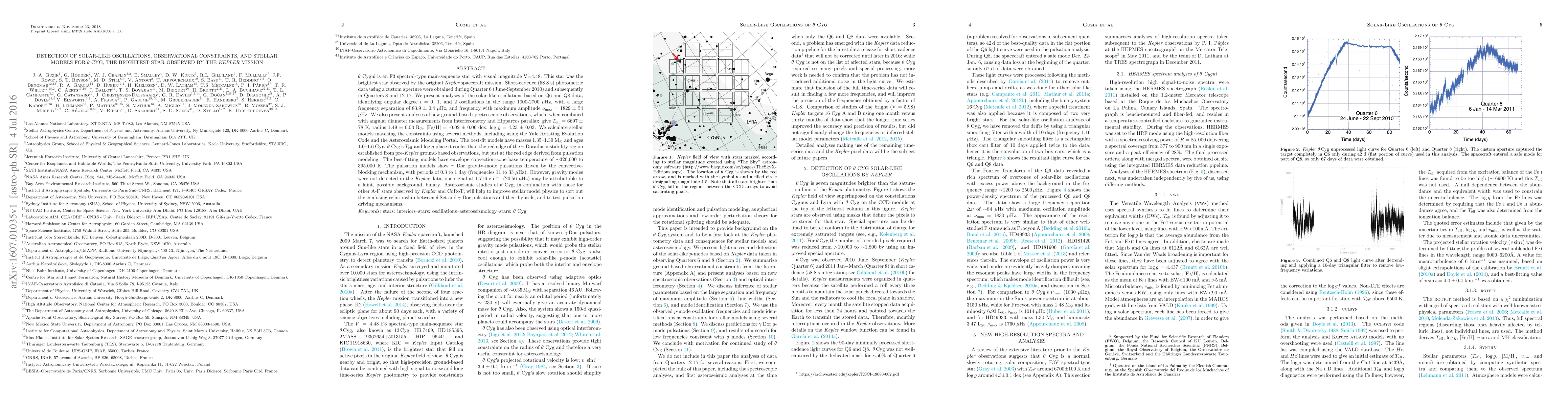 The study of theta Cyg, the brightest star observed by Kepler, reveals solar-like oscillations and provides stellar models, including masses 1.35-1.39 solar masses and ages 1.0-1.6 Gyr.
