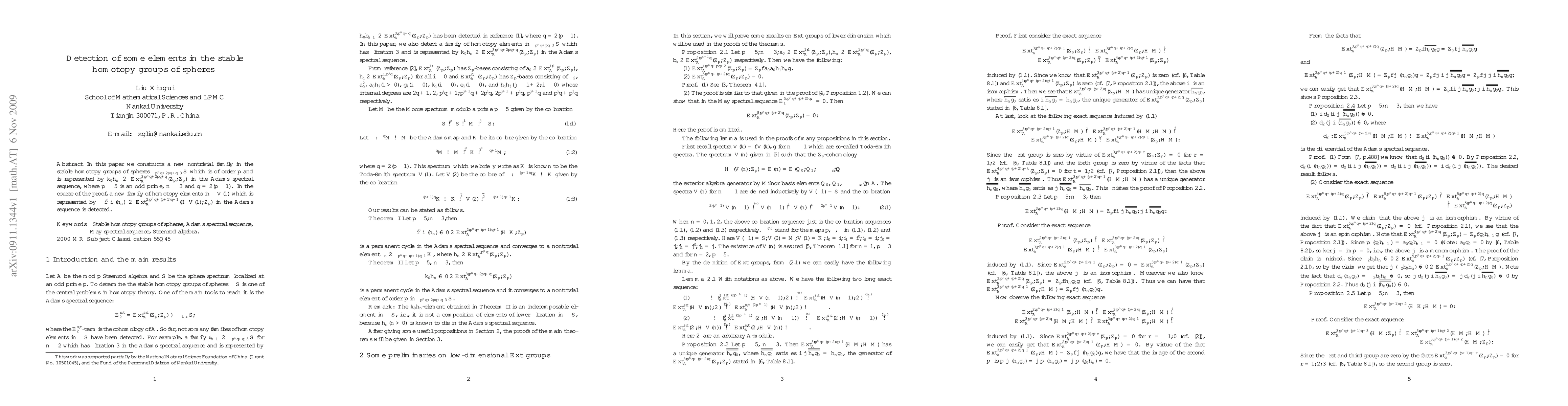 In this paper we constructs a new nontrivial family in the stable homotopy groups of spheres $\pi_{p^nq+2pq+q-3}S$ which is of order $p$ and is represented by $k_0h_{n} \in Ext_A^{3,p^nq+2pq+q}(\mathbb{Z}_p,\mathbb{Z}_p)$ in the Adams spectral sequence, where $p\geq 5$ is an odd prime, $n\geq 3$ and $q=2(p-1)$. In the course of the proof, a new family of homotopy elements in $\pi_{\ast}V(1)$ which is represented by $\beta_{\ast}{i^{\prime}}_{\ast}i_{\ast}({h}_n)\in Ext_A^{2,p^nq+(p+1)q+1}(H^{\ast}V(1),\mathbb{Z}_p)$ in the Adams sequence is detected.