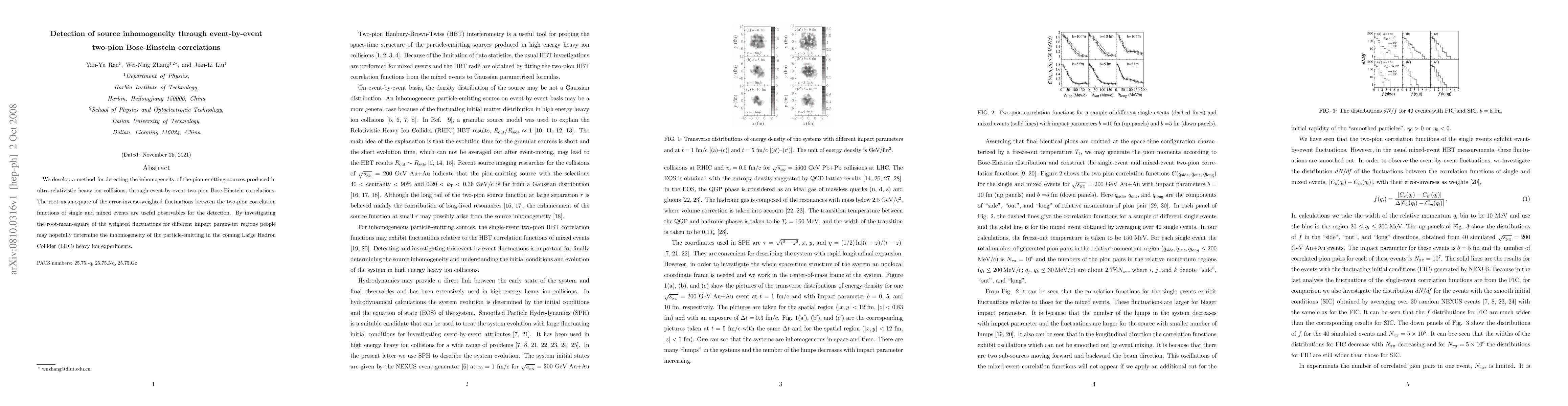 This paper proposes a method for detecting source inhomogeneity in ultra-relativistic heavy ion collisions using event-by-event two-pion Bose-Einstein correlations. The root-mean-square of error-inverse-weighted fluctuations between single and mixed event correlation functions serves as a key observable for this purpose.