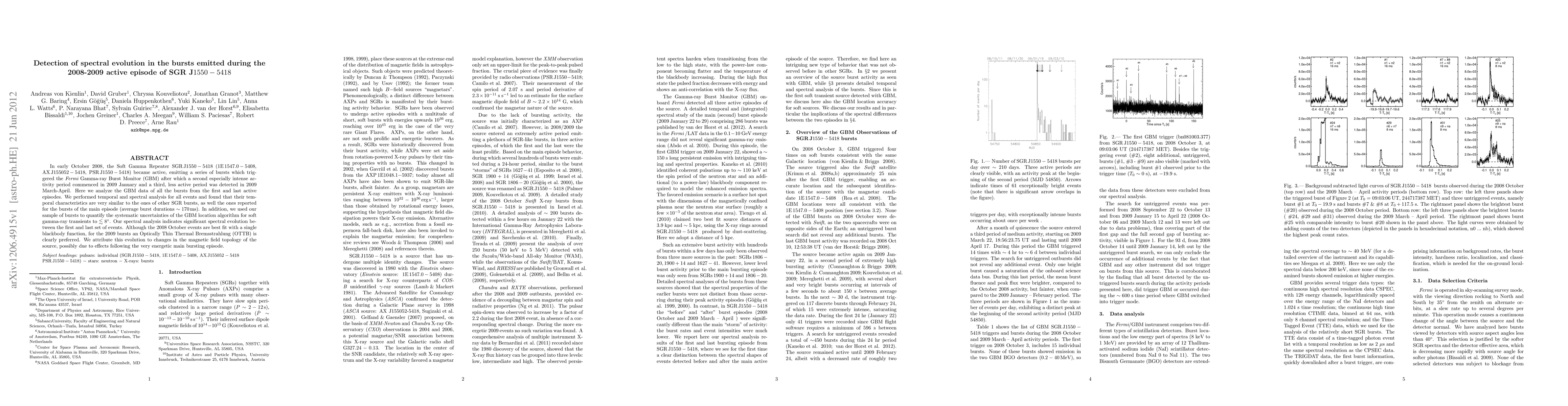 The SGR J1550 - 5418 burst emissions showed significant spectral evolution between its first and last active episodes, with changes attributed to the magnetic field topology of the source.