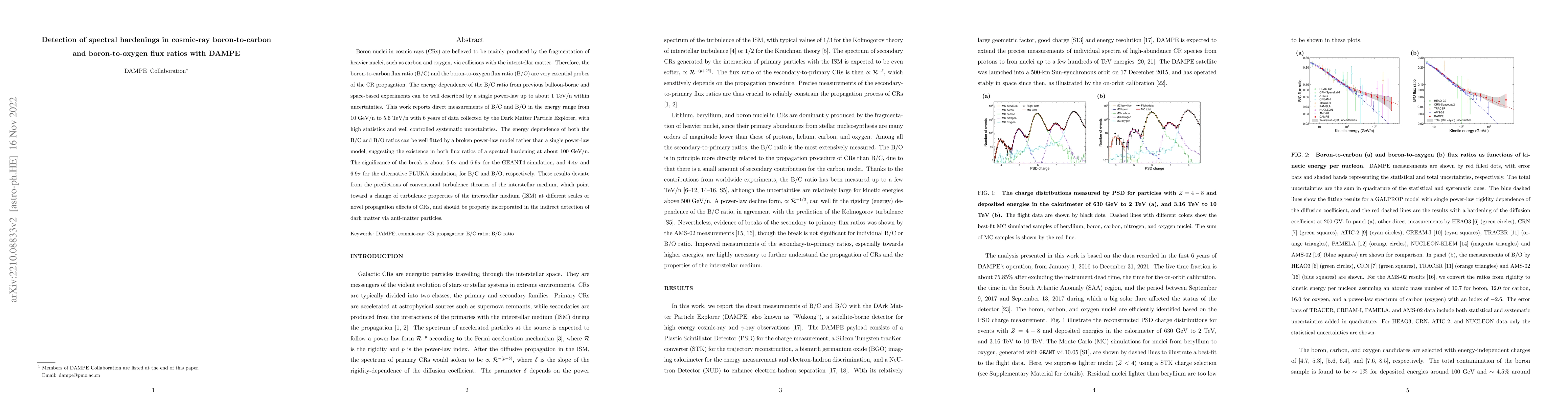 This paper reports on the detection of spectral hardenings in the boron-to-carbon and boron-to-oxygen flux ratios in cosmic rays using the DAMPE satellite, revealing a break in the energy dependence at around 100 GeV/n, which challenges conventional interstellar medium turbulence theories.