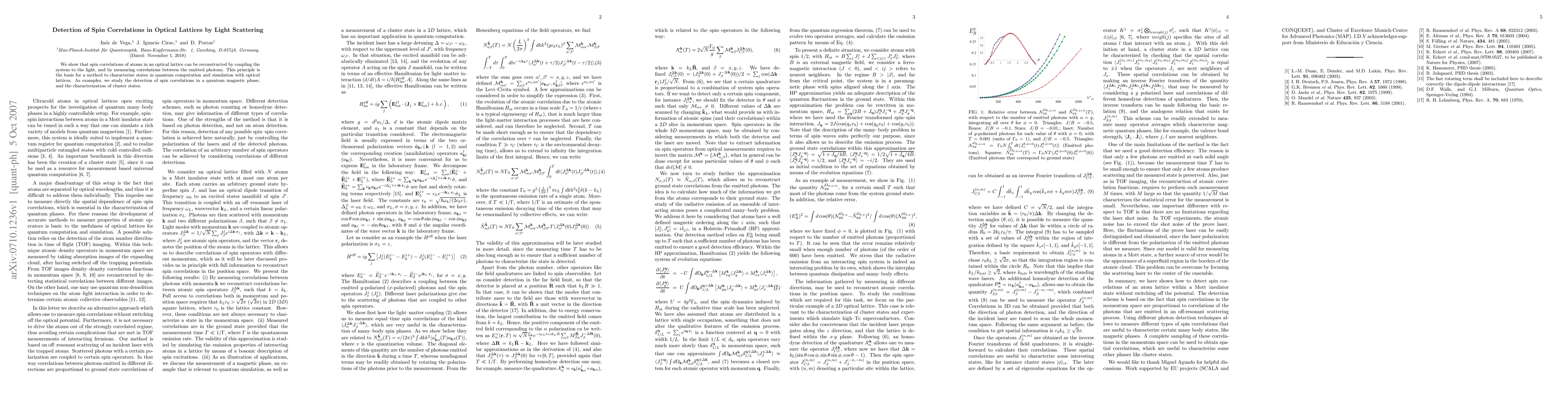 This paper demonstrates a method to reconstruct spin correlations in optical lattices by measuring correlations between emitted photons, enabling characterization of quantum states for computation and simulation. The study includes examples of detecting spin correlations in quantum magnetic phases and characterizing cluster states.