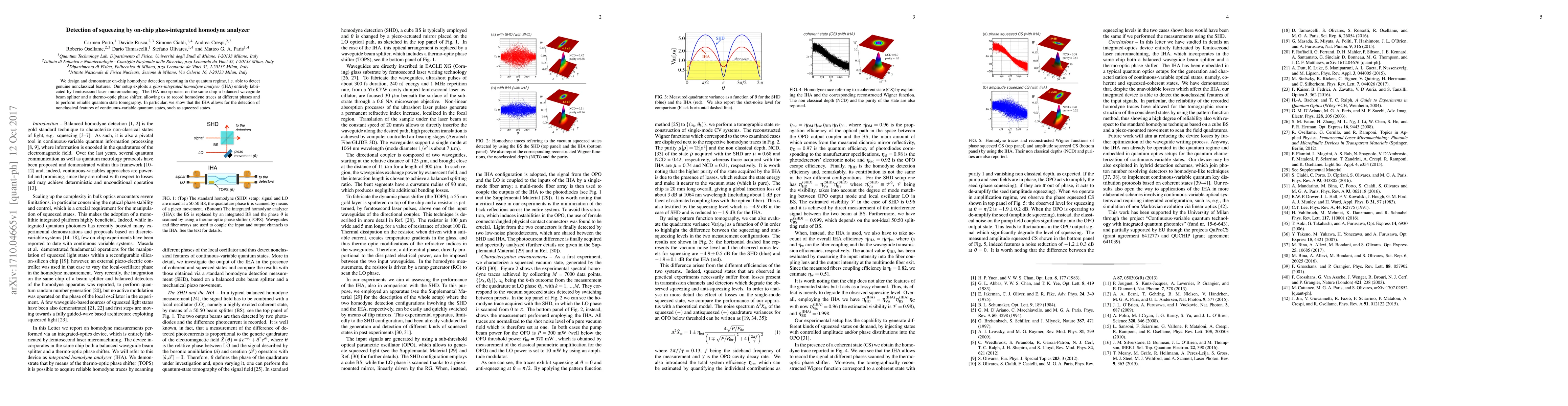This paper presents a glass-integrated homodyne analyzer fabricated via femtosecond laser micromachining, capable of detecting squeezing in continuous-variable quantum states. The on-chip setup enables reliable quantum state tomography and reveals nonclassical features of squeezed states.