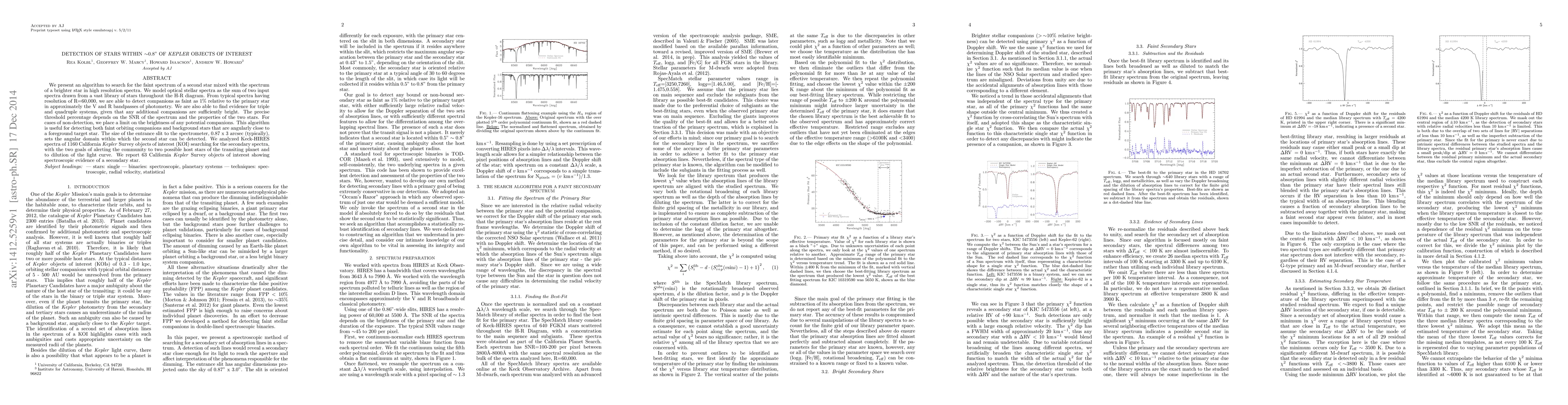 This paper introduces an algorithm for detecting faint stars mixed with brighter stars in high-resolution spectra, capable of identifying companions as faint as 1% in the V and R bands. The method analyzes Keck-HIRES spectra of 1160 Kepler Objects of Interest, finding 63 with evidence of secondary stars.