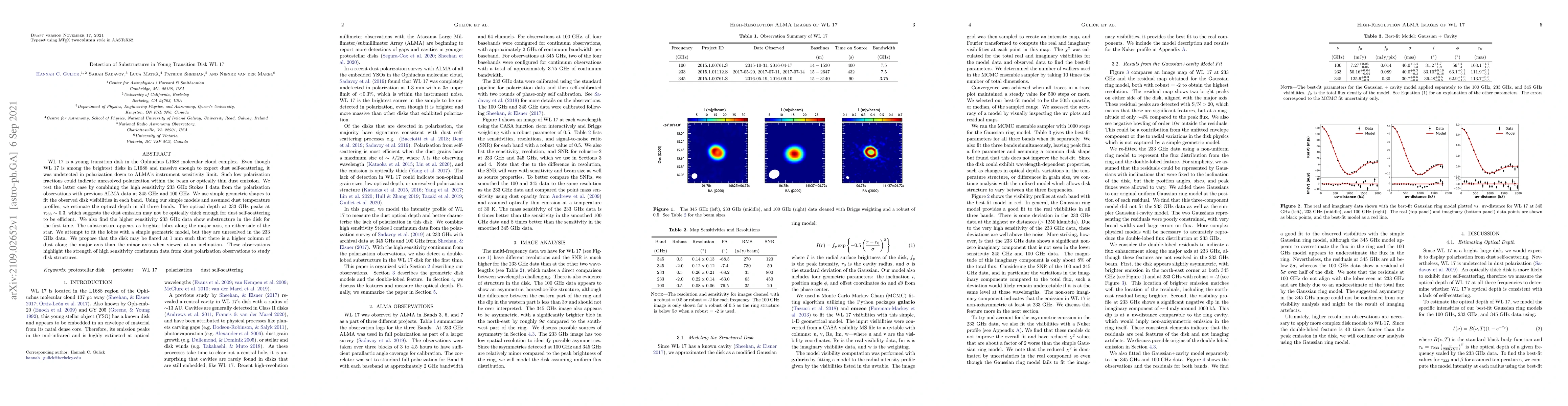 This paper investigates the young transition disk WL 17 in the Ophiuchus molecular cloud, finding low polarization despite its brightness, suggesting optically thin dust emission. High-sensitivity 233 GHz data reveal substructure in the disk, indicating brighter lobes along the major axis, which may suggest a flared disk geometry.
