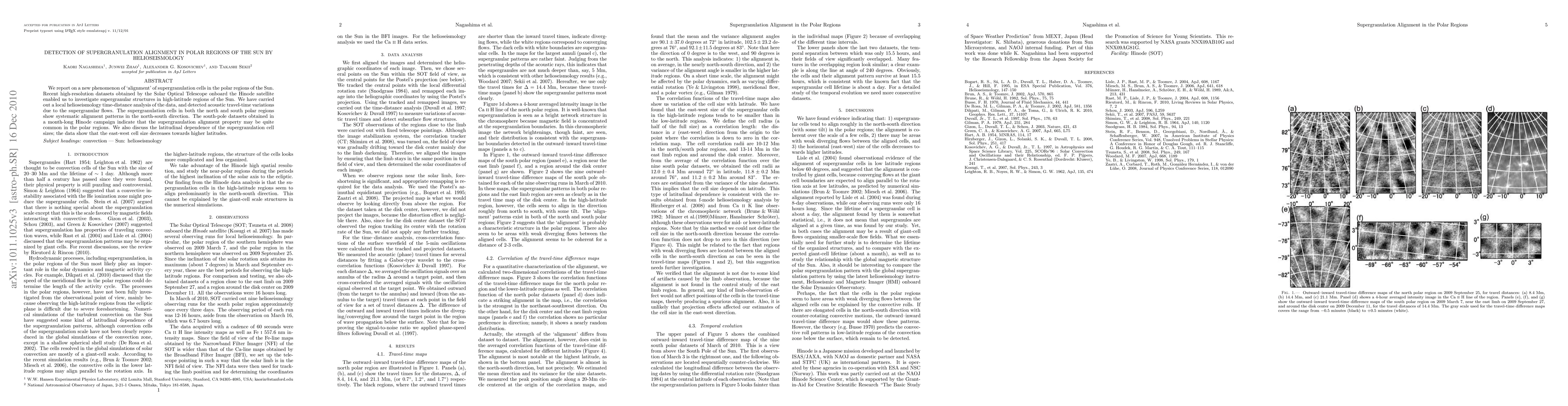 This study reveals a new alignment phenomenon of supergranulation cells in the polar regions of the Sun, detected via high-resolution helioseismology data from the Hinode satellite. The analysis shows systematic north-south alignment patterns in both polar regions, with a notable decrease in east-west cell size towards higher latitudes.