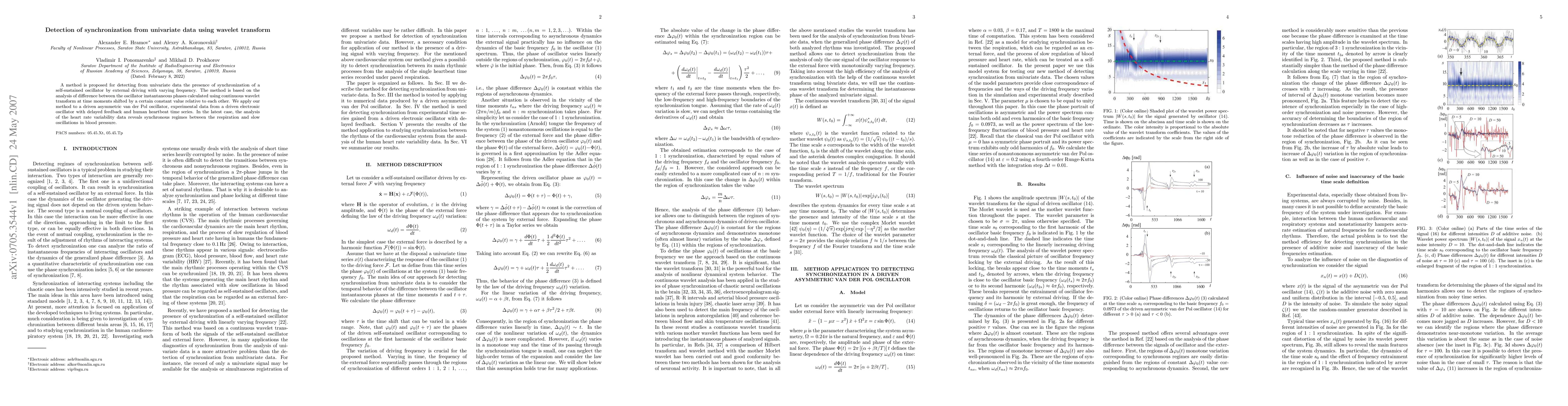 Researchers developed a method to detect synchronization in univariate data using wavelet transform, revealing synchronous regimes between respiration and slow oscillations in blood pressure.