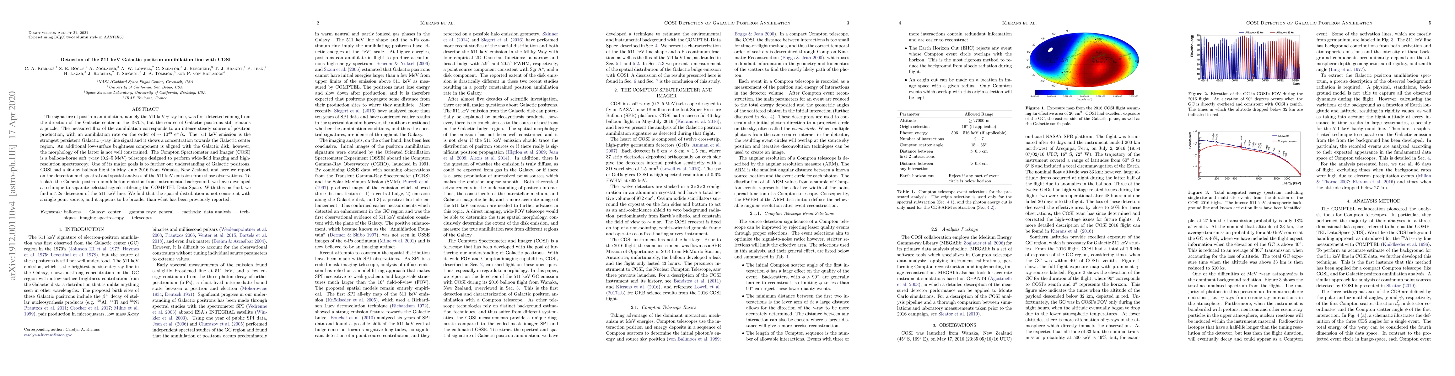 The COSI telescope detected a 7.2σ signal of the 511 keV positron annihilation line, revealing a broader spatial distribution than previously reported, while isolating the Galactic positron annihilation emission from instrumental background. This detection enhances our understanding of the Galactic positron source and its distribution.