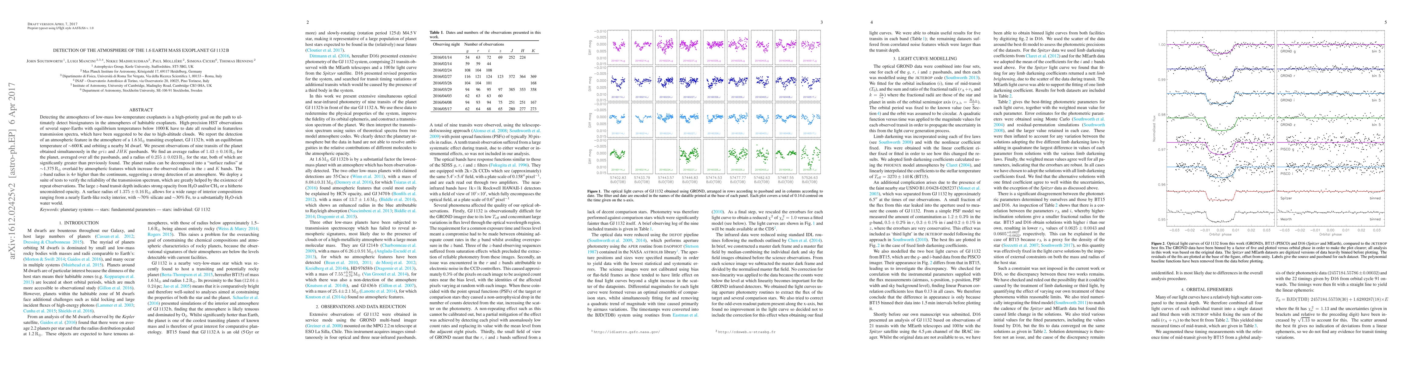 This paper reports the detection of an atmospheric feature in the low-mass exoplanet GJ 1132b, using high-precision HST observations. The planet's radius is found to include atmospheric features, particularly in the z-band, indicating strong opacity likely from H2O and/or CH4, which may suggest diverse interior compositions.
