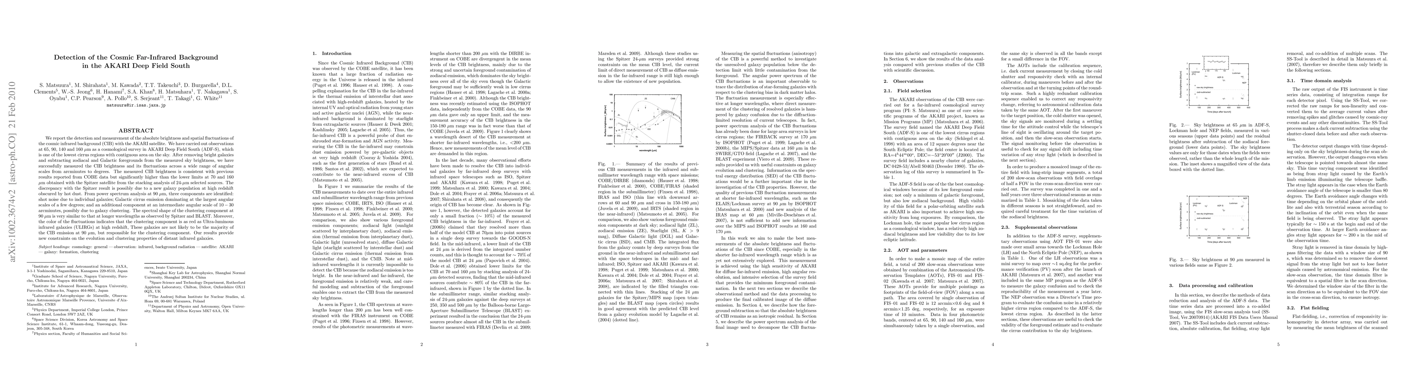 We report the detection and measurement of the absolute brightness and spatial fluctuations of the cosmic infrared background (CIB) with the AKARI satellite. We have carried out observations at 65, 90, 140 and 160 um as a cosmological survey in AKARI Deep Field South (ADF-S), which is one of the lowest cirrus regions with contiguous area on the sky. After removing bright galaxies and subtracting zodiacal and Galactic foregrounds from the measured sky brightness, we have successfully measured the CIB brightness and its fluctuations across a wide range of angular scales from arcminutes to degrees. The measured CIB brightness is consistent with previous results reported from COBE data but significantly higher than the lower limits at 70 and 160 um obtained with the Spitzer satellite from the stacking analysis of 24-um selected sources. The discrepancy with the Spitzer result is possibly due to a new galaxy population at high redshift obscured by hot dust. From power spectrum analysis at 90 um, three components are identified: shot noise due to individual galaxies; Galactic cirrus emission dominating at the largest angular scales of a few degrees; and an additional component at an intermediate angular scale of 10-30 arcminutes, possibly due to galaxy clustering. The spectral shape of the clustering component at 90 um is very similar to that at longer wavelengths as observed by Spitzer and BLAST. Moreover, the color of the fluctuations indicates that the clustering component is as red as Ultra-luminous infrared galaxies (ULIRGs) at high redshift, These galaxies are not likely to be the majority of the CIB emission at 90 um, but responsible for the clustering component. Our results provide new constraints on the evolution and clustering properties of distant infrared galaxies.