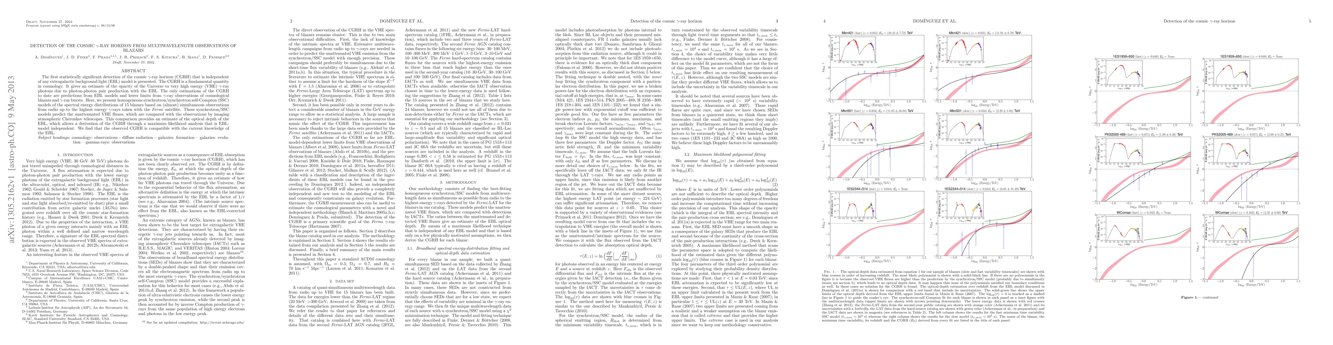 The first statistically significant detection of the cosmic \gamma-ray horizon (CGRH) that is independent of any extragalactic background light (EBL) model is presented. The CGRH is a fundamental quantity in cosmology. It gives an estimate of the opacity of the Universe to very high energy (VHE) \gamma-ray photons due to photon-photon pair production with the EBL. The only estimations of the CGRH to date are predictions from EBL models and lower limits from \gamma-ray observations of cosmological blazars and \gamma-ray bursts. Here, we present homogeneous synchrotron/synchrotron self-Compton (SSC) models of the spectral energy distributions of 15 blazars based on (almost) simultaneous observations from radio up to the highest energy \gamma-rays taken with the Fermi satellite. These synchrotron/SSC models predict the unattenuated VHE fluxes, which are compared with the observations by imaging atmospheric Cherenkov telescopes. This comparison provides an estimate of the optical depth of the EBL, which allows a derivation of the CGRH through a maximum likelihood analysis that is EBL-model independent. We find that the observed CGRH is compatible with the current knowledge of the EBL.