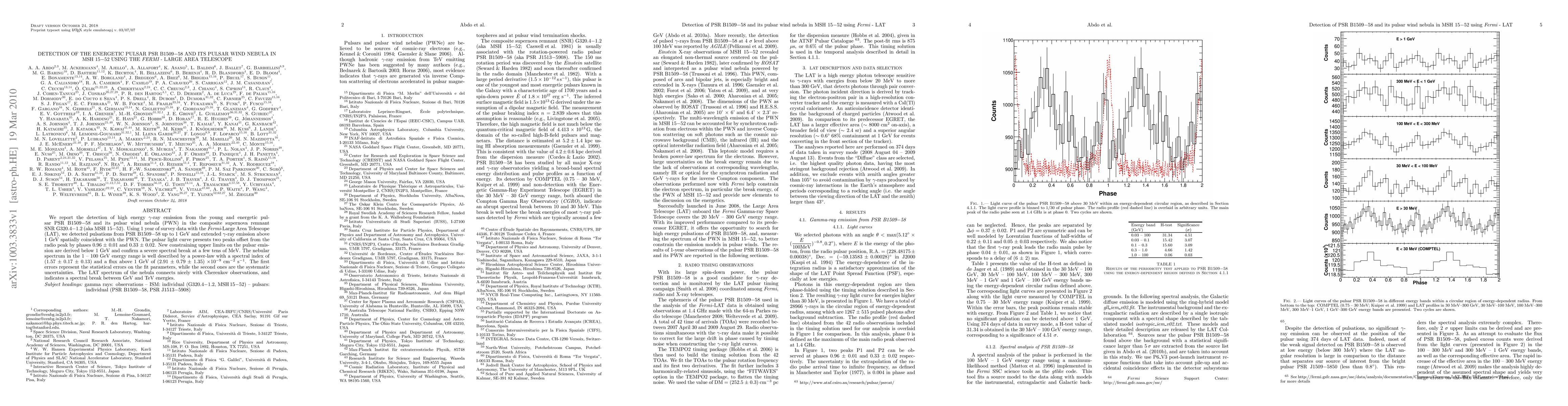This paper reports the detection of high-energy gamma-ray emissions from the pulsar PSR B1509-58 and its associated pulsar wind nebula using the Fermi-LAT. The pulsar shows two distinct peaks in its light curve, and the nebula's spectrum follows a power-law with a spectral break between GeV and TeV energies.